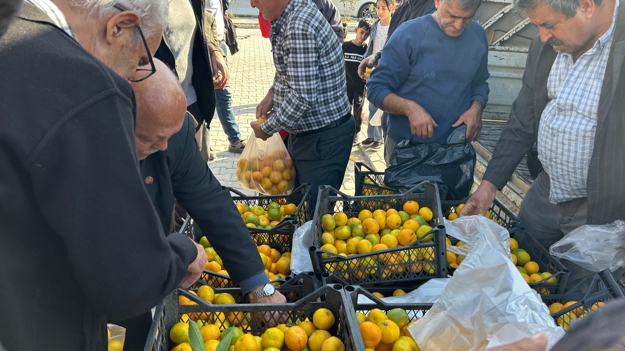 Samandağ'da üreticiler, dalında kalan mandalinaları toplayıp kasalarla ilçe merkezine getirdi. Üreticiler, tarlada kilosu 2 liraya kadar düşen mandalinayı kasalarla vatandaşlara ücretsiz dağıttı. Tonlarca mandalina kısa sürede tükenirken, çiftçi Ferit Diker, mandalinanın kilosunun tarlada 2 liraya kadar düştüğünü, bu rakama bile alıcı çıkmadığını söyledi.