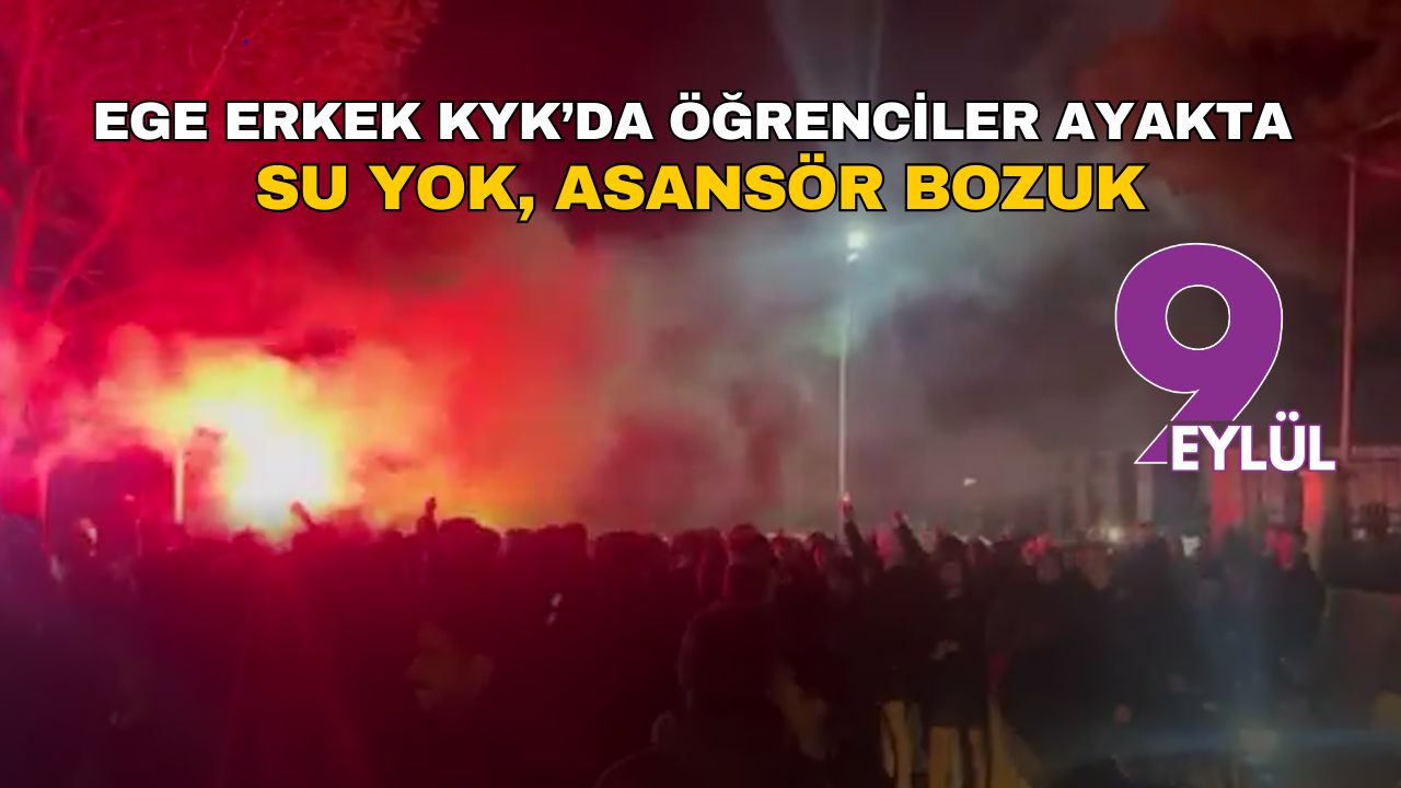 Ege Erkek KYK Yurdu’nda barınan bir grup öğrenci, yaşadıkları sorunlara dikkat çekmek amacıyla yurt binası önünde toplandı. Sloganlar atarak kampüs içerisine yürüyen öğrenciler, özellikle su kesintileri ve sıcak su eksikliği başta olmak üzere birçok temel ihtiyacın karşılanmadığını dile getirdi.