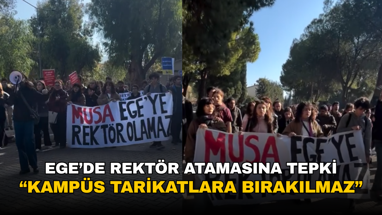 Ege Üniversitesi öğrencileri, Cumhurbaşkanı Erdoğan’ın imzasıyla Resmî Gazete’de yayımlanan atama kararıyla Prof. Dr. Musa Alıcı’nın rektörlüğe getirilmesine karşı yürüyüş düzenledi. Öğrenciler, atamayı “kayyım” ve “gerici” olarak nitelendirirken, tarikat ve cemaatlerin üniversitelerdeki etkisine karşı olduklarını vurguladı. Yürüyüş boyunca “Kayyımlar gidecek biz kalacağız” sloganları atıldı.
