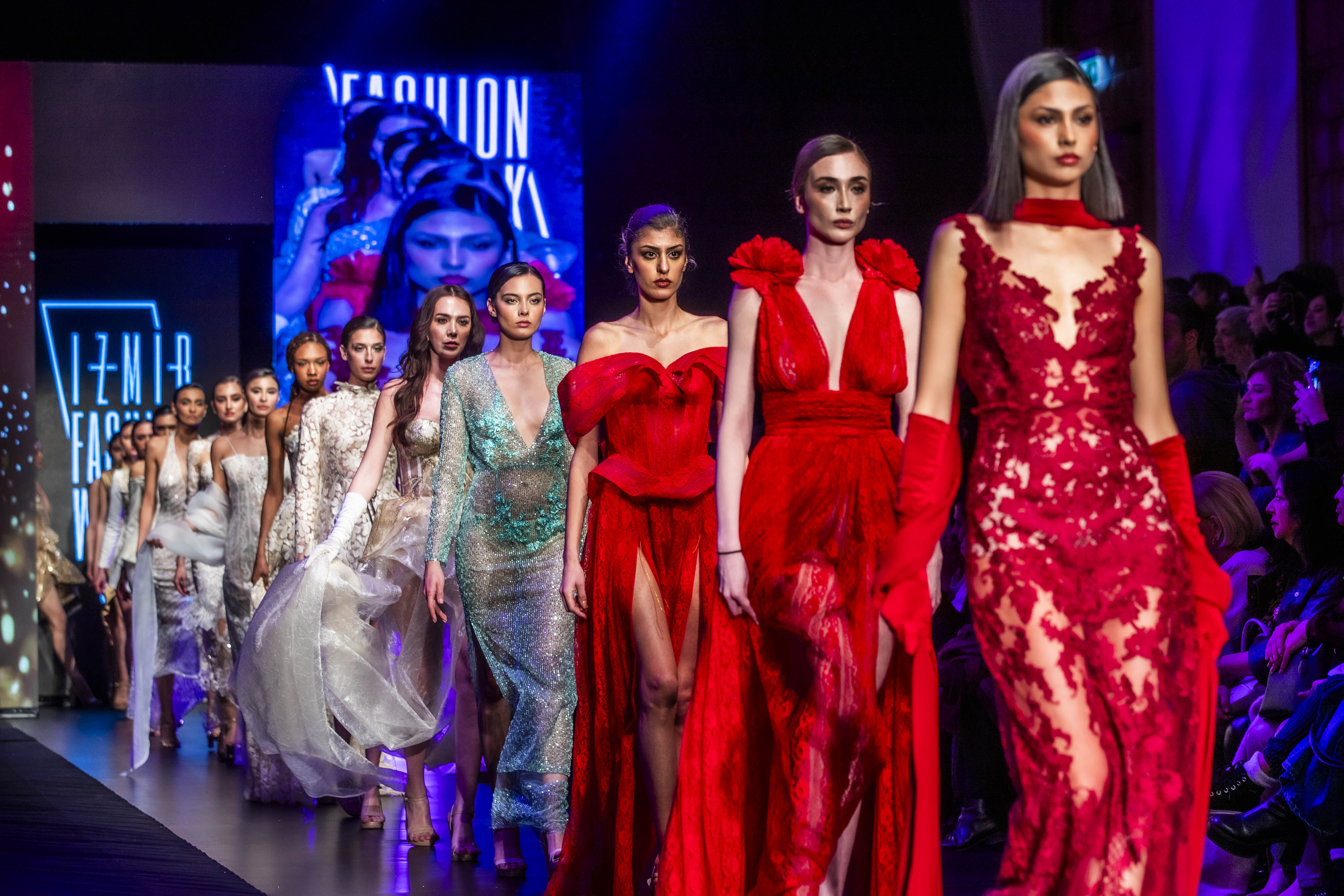 MODA ve cemiyet hayatını bir araya getiren 12. İzmir Fashion Week, Grand Hyatt İzmir İstinyePark'ın ev sahipliğinde başladı. Konak Belediyesi, Ege İhracatçı Birlikleri ve İzmir Moda Tasarımcıları Derneği'nin destekleriyle Rönesans Ajans tarafından düzenlenen ve 27 Mart'a kadar sürecek olan etkinliğin ilk gününde üç farklı tasarımcının koleksiyonları podyuma taşındı. Akif Örük koreografisiyle gerçekleşen ilk gün defilelerinde; Melissa Yılmaz "Fleur Eternelle" adlı 26 parçalık koleksiyonunu, Öznur Güner Özkaya ise Euznour markasının 37 parçalık "Miss Gold and Diamond" tasarımlarını tanıttı. Gecenin finalinde yer alan modacı Esin Özyiğit'in 32 parçalık koleksiyon sunumu ise anlamlı bir sosyal sorumluluk projesine sahne oldu. Bu defileden elde edilen gelir, İzmir Atatürk Organize Sanayi Bölgesi (İAOSB) Vakfı Kadınlar Kulübü’nün hayata geçireceği anaokulu projesine bağışlandı.