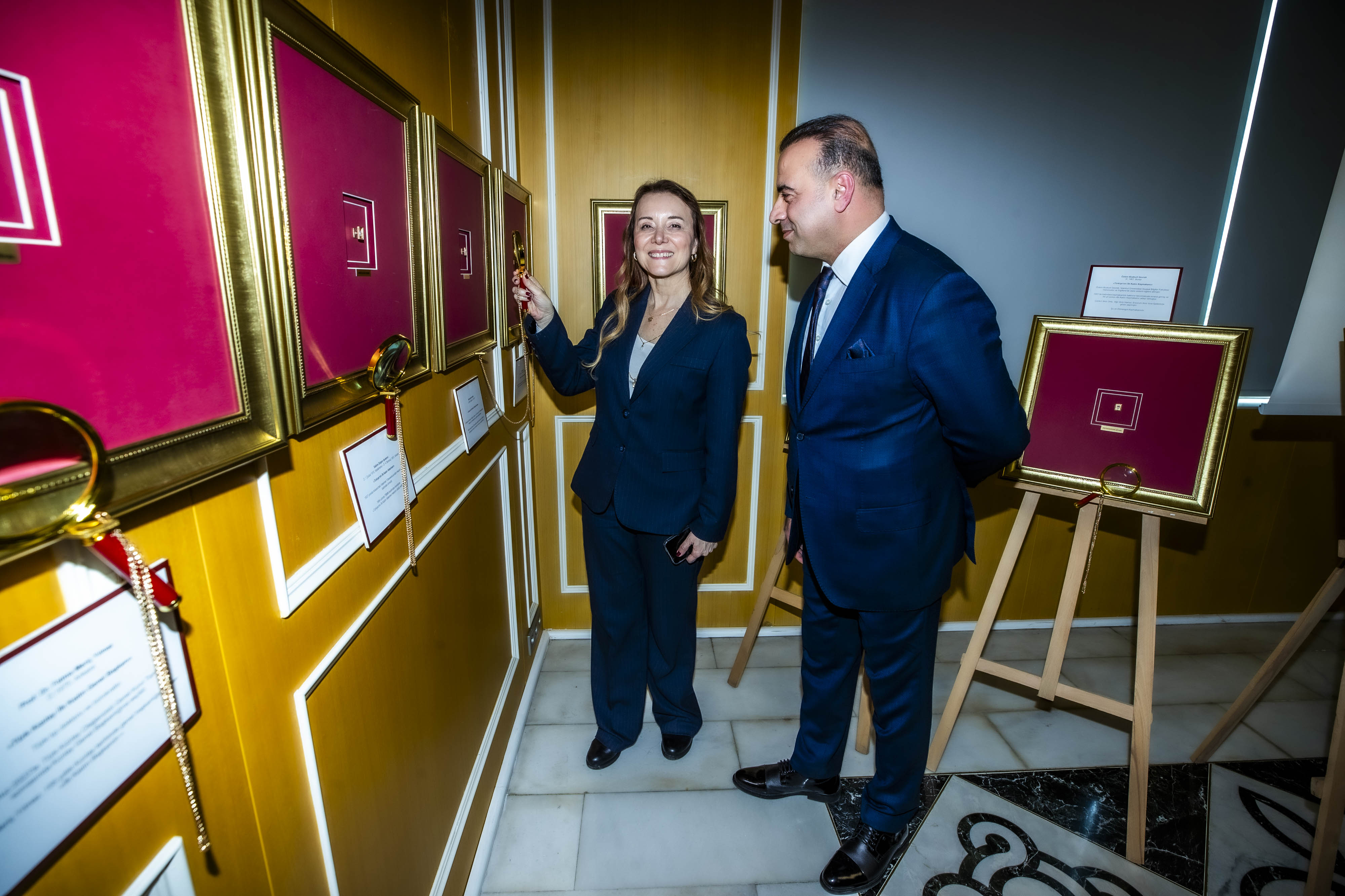 Serginin ilk gününde Zübeyde Hanım portresi, Folkart adına İnci Sancak, Ferrah Sancak tarafından sahiplenildi.