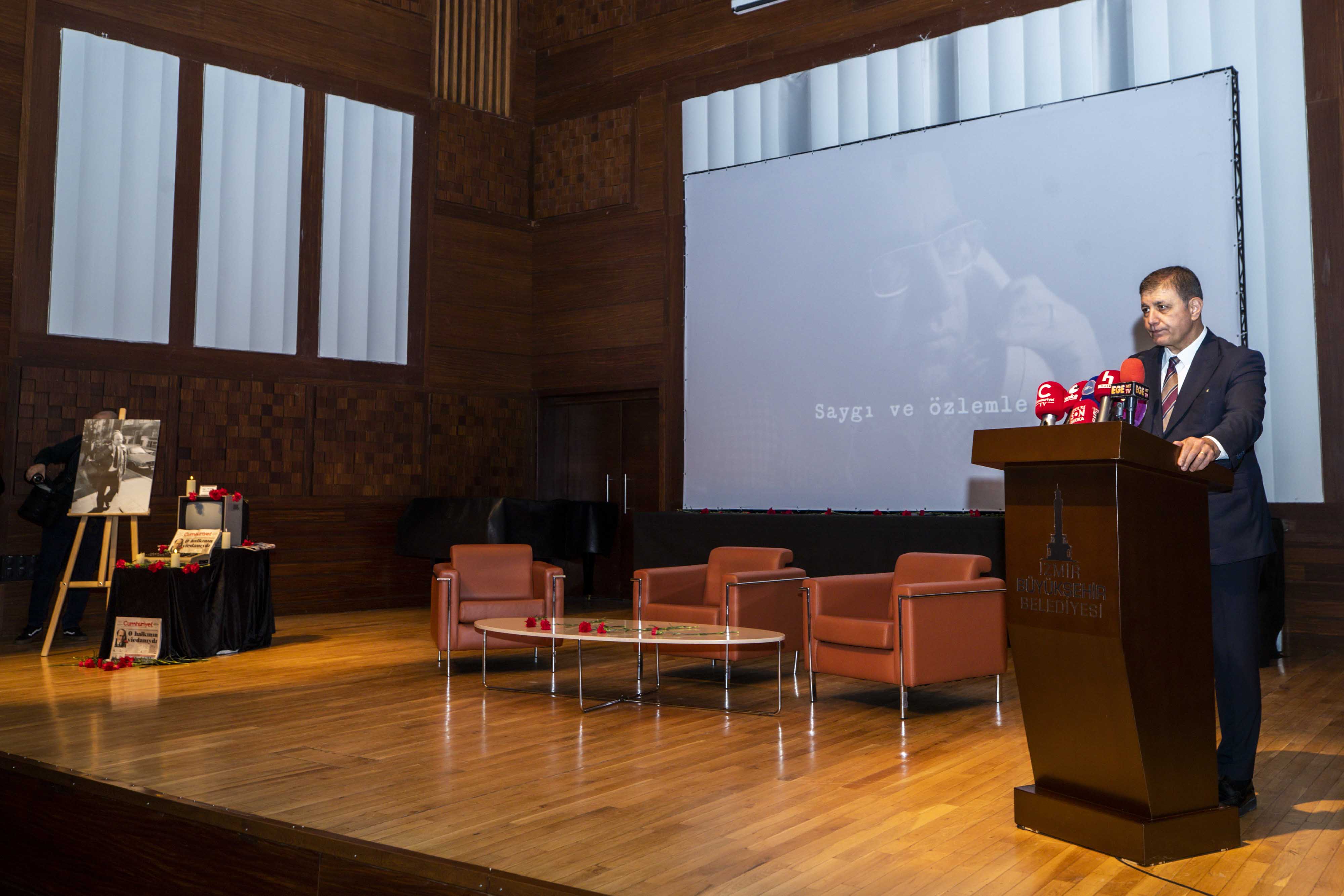 CUMHURİYET Halk Partisi (CHP) İzmir İl Başkanlığı, Araştırmacı Gazeteci-Yazar Uğur Mumcu’nun katledilişinin 33’üncü yıl dönümünde Ahmed Adnan Saygun Sanat Merkezi Küçük Salon’da anma programı düzenledi. Anma programına; İzmir Büyükşehir Belediye Başkanı Dr. Cemil Tugay, CHP İzmir İl Başkanı Çağatay Güç, CHP İzmir Milletvekili Ednan Arslan, Konak Belediye Başkanı Nilüfer Çınarlı Mutlu, Karabağlar Belediye Başkanı Helil Kınay, Bornova Belediye Başkanı Ömer Eşki, Seferihisar Belediye Başkanı İsmail Yetişkin, Gaziemir Belediye Başkanı Ünal Işık, Bergama Belediye Başkanı Tanju Çelik, Güzelbahçe Belediyesi Başkanvekili Çağlayan Bilgen, İzmir Gazeteciler Cemiyeti Başkanı Dilek Gappi, Cumhuriyet Vakfı Başkanı Alev Coşkun, Cumhuriyet Gazetesi Ege Bölge Temsilcisi Mehmet Şakir Örs, Cumhuriyet Gazetesi Yazarı Miyase İlknur, siyasi partilerin temsilcileri ve çok sayıda Uğur Mumcu seveni katıldı.