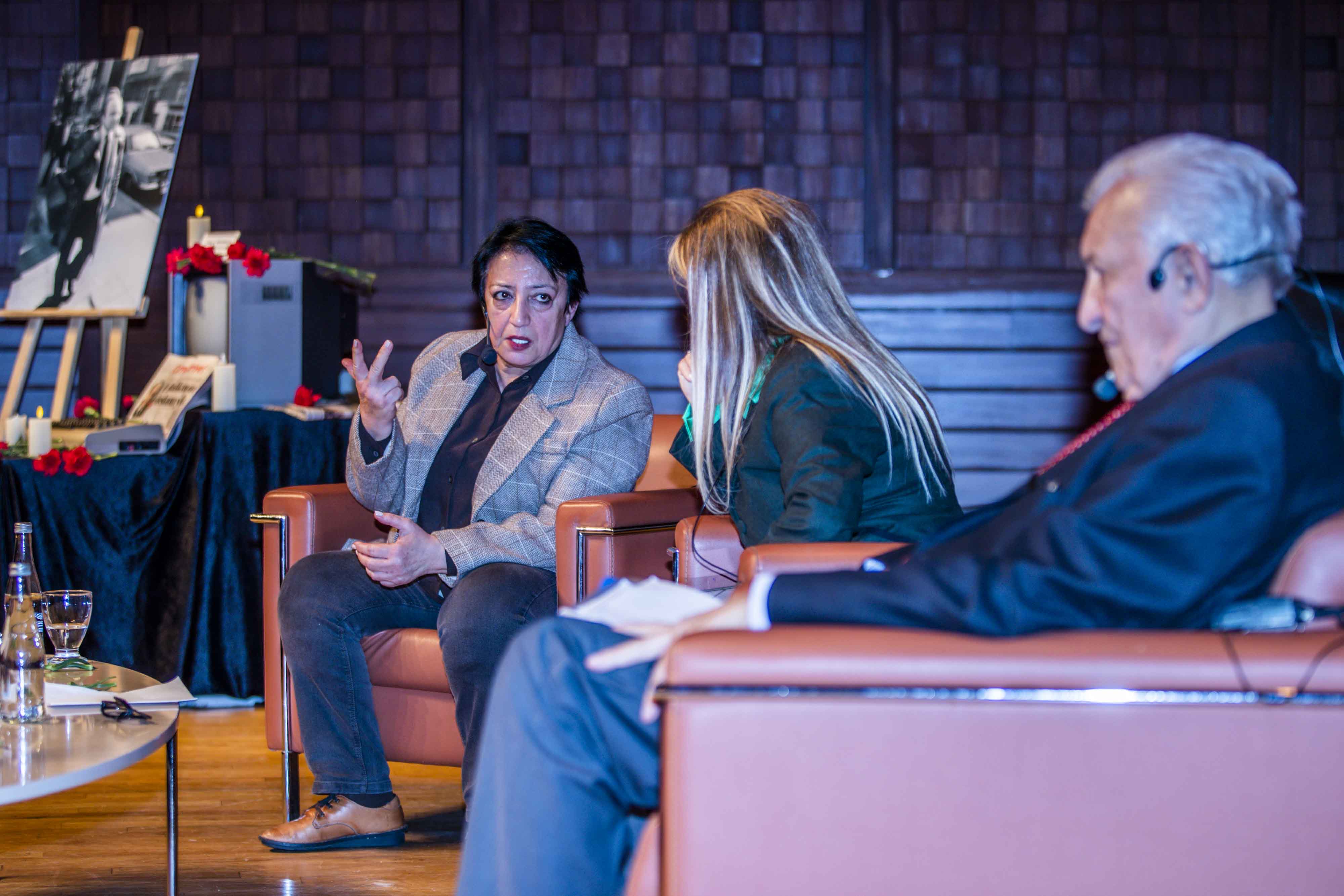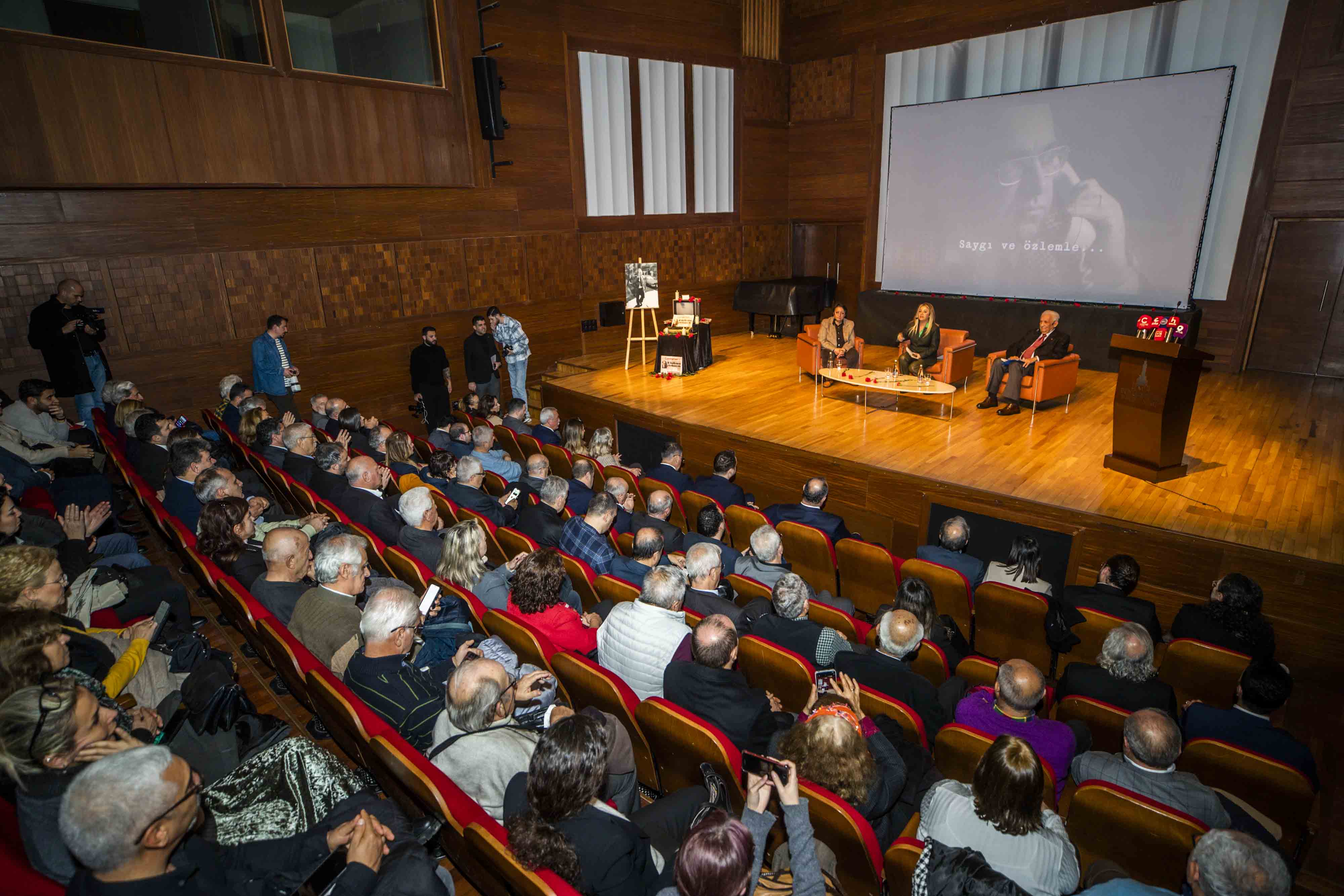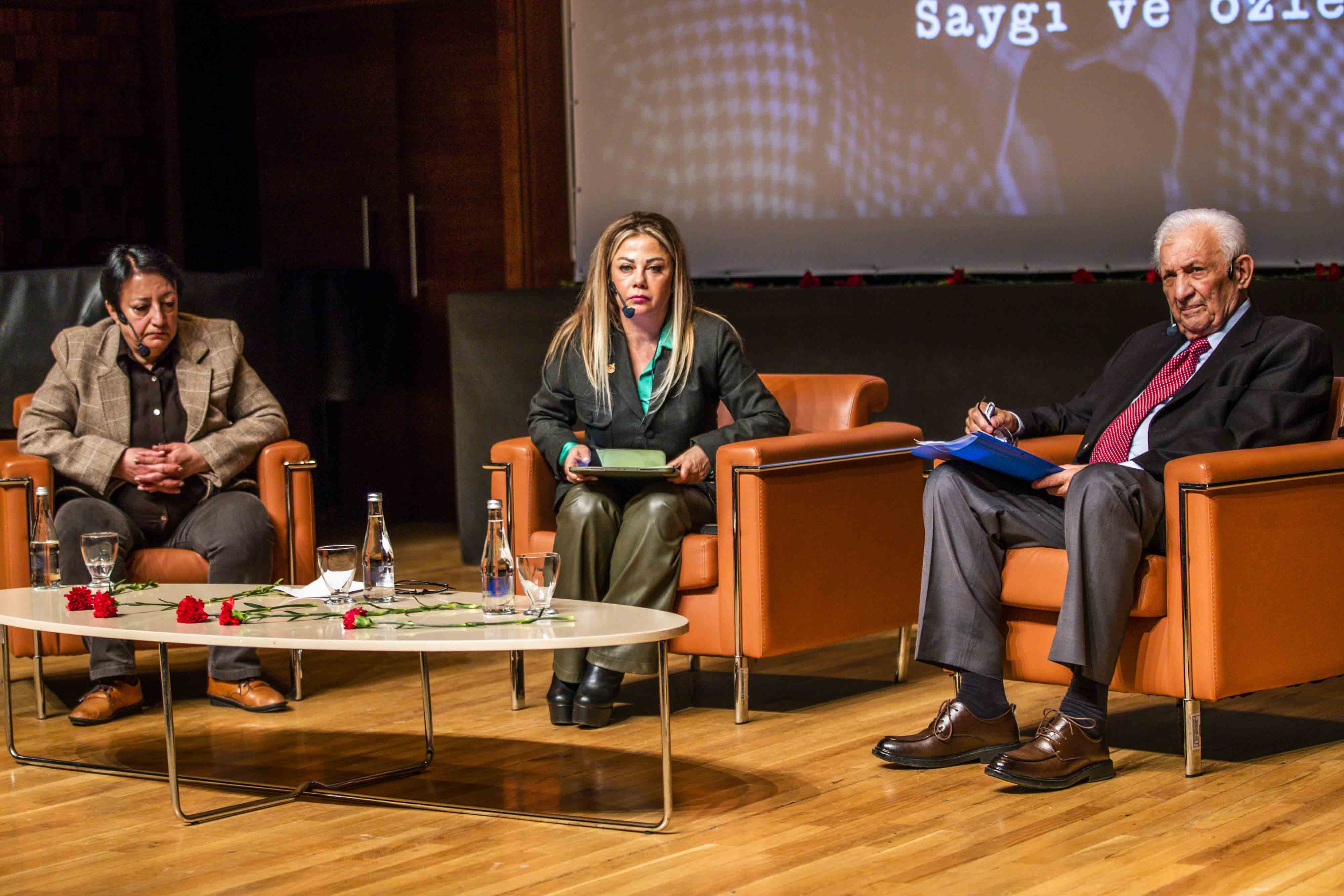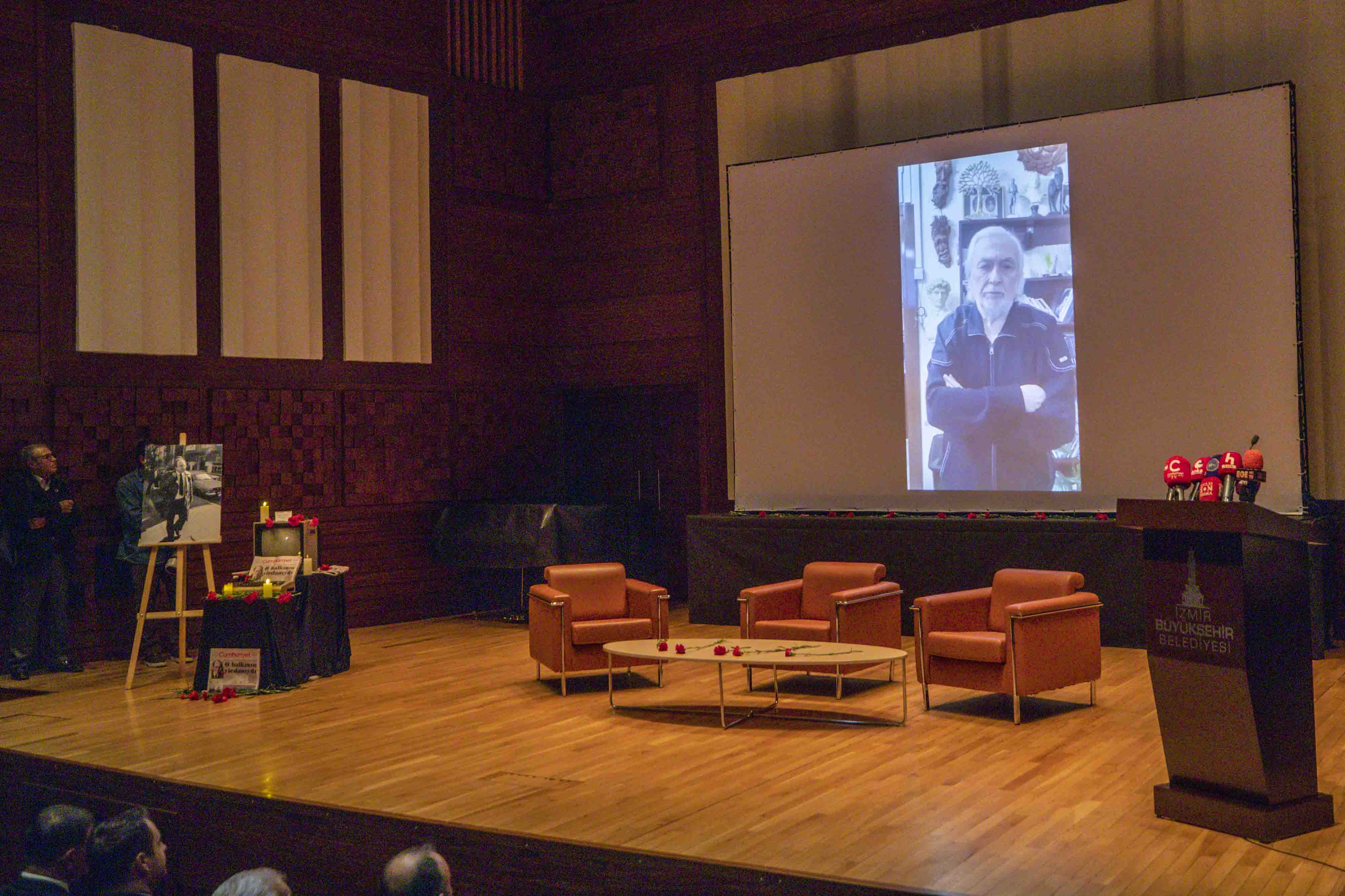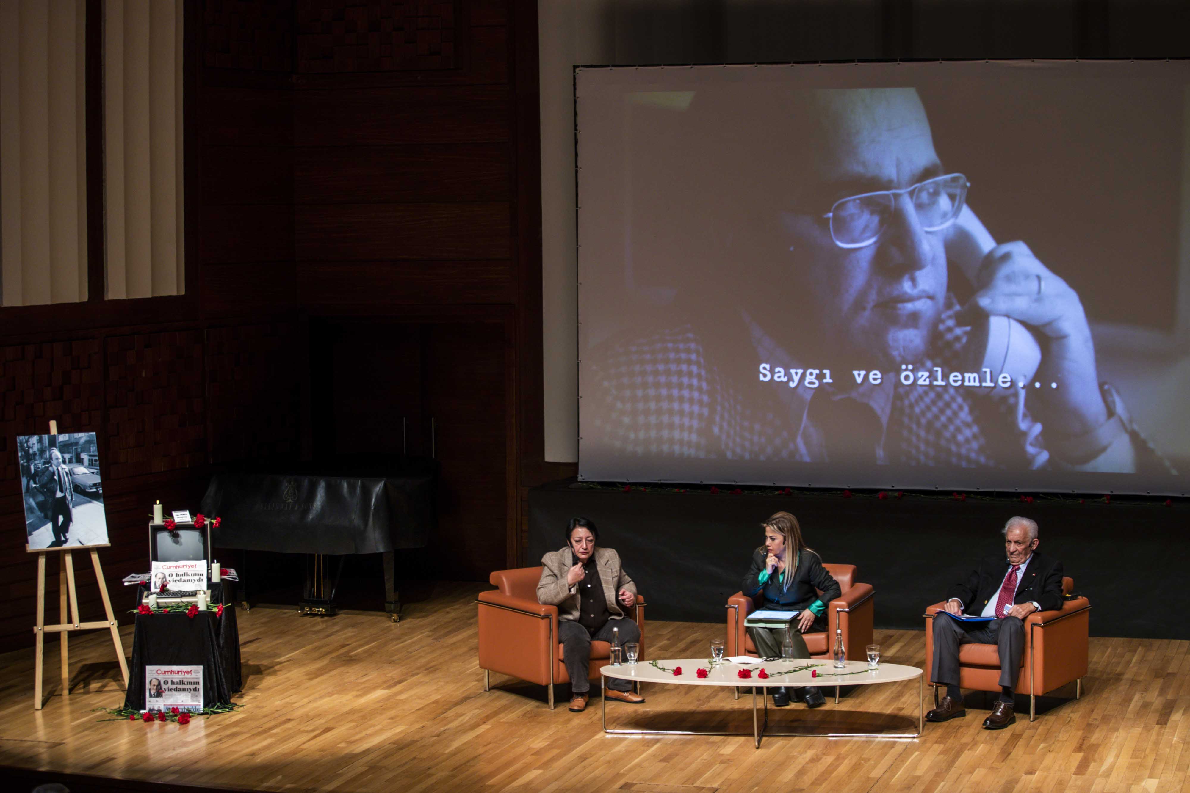 Anma programının söyleşi bölümünde gazetecilik, demokrasi ve aydınlanma mücadelesi Uğur Mumcu’nun mirası üzerinden ele alındı. Söyleşinin moderatörlüğünü İzmir Gazeteciler Cemiyeti Başkanı Dilek Gappi üstlenirken, Cumhuriyet Vakfı Başkanı Alev Coşkun ve Cumhuriyet Gazetesi Yazarı Miyase İlknur konuşmacı olarak yer aldı.