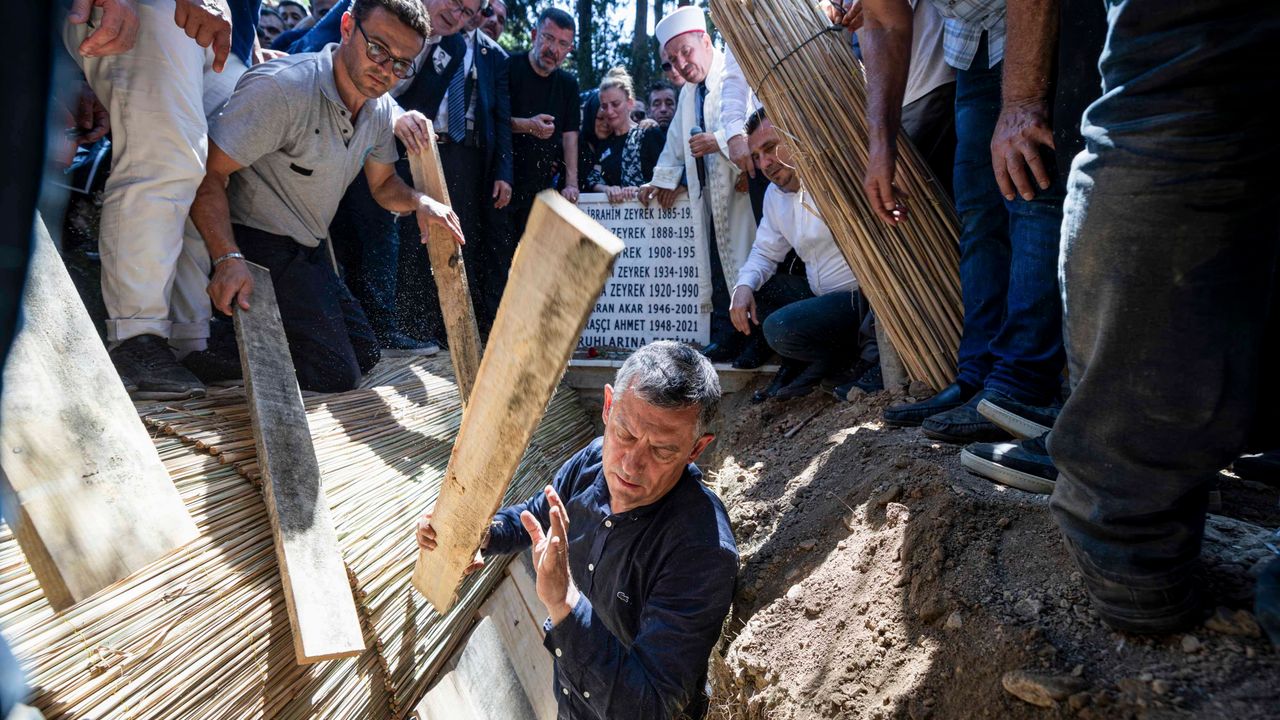 Yılın Haber Fotoğrafı Orkun Emre KÜÇÜKERBAŞ / İzmir B.B. Cumhuriyet Halk Partisi Genel Başkanı Özgür Özel, evinde elektrik akımına kapılarak hayatını kaybeden Manisa Büyükşehir Belediye Başkanı Ferdi Zeyrek’in cenazesine katıldı. Özel, aynı zamanda yakın arkadaşı olan Zeyrek’i Manisa Çatal Mezarlığı’ndaki aile kabristanına kendisi defnetti.