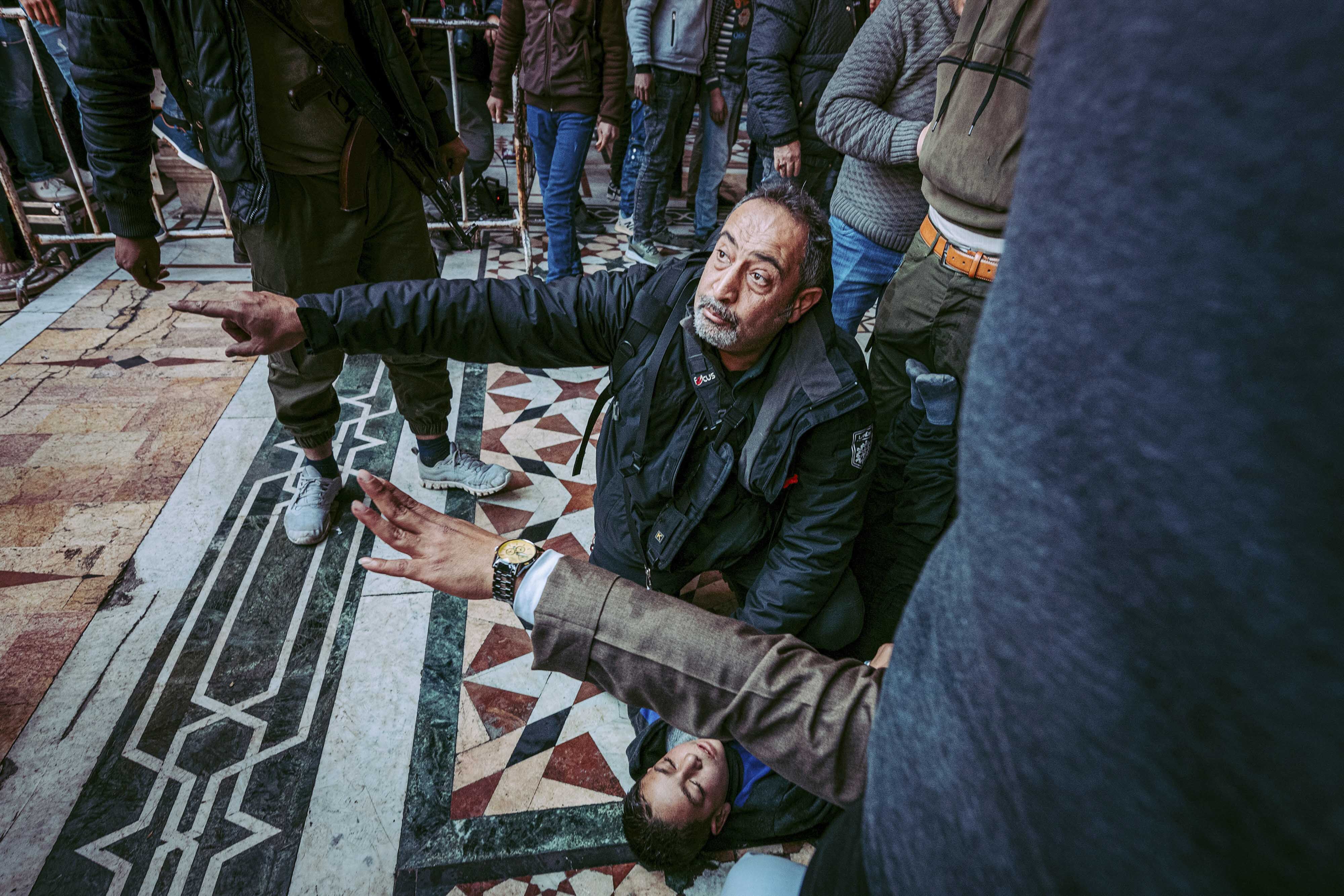 Haber Fotoğrafı İkincisi Mehmet ASLAN / Serbest Suriye’nin başkenti Şam’da Emevi Camii’nde yaşanan yoğunluk kısa sürede izdihama dönüştü. Yere düşerek yaralanan bir çocuk, olay yerinde bulunan ve asıl mesleği doktorluk olan bir belgesel fotoğrafçısı tarafından müdahale edilirken görüntülendi.