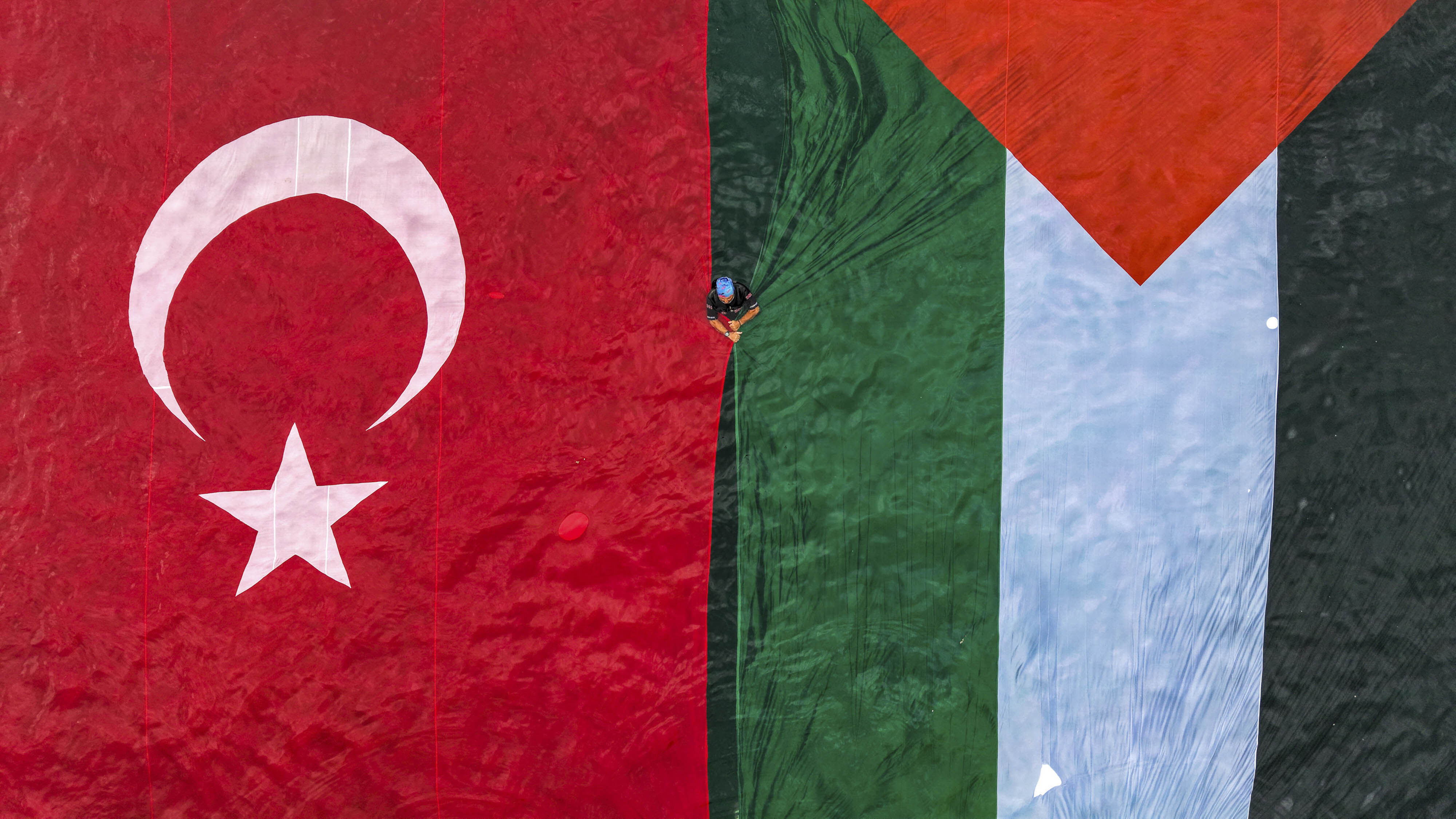 Rafet Hüner Özel Ödülü Semih ERSÖZLER / Demirören Haber Ajansı İsrail’in Filistin’e gerçekleştirdiği saldırıları protesto etmek ve Filistin’le dayanışma amacıyla Antalya’da deniz içerisinde Türk ve Filistin bayrağı açıldı.
