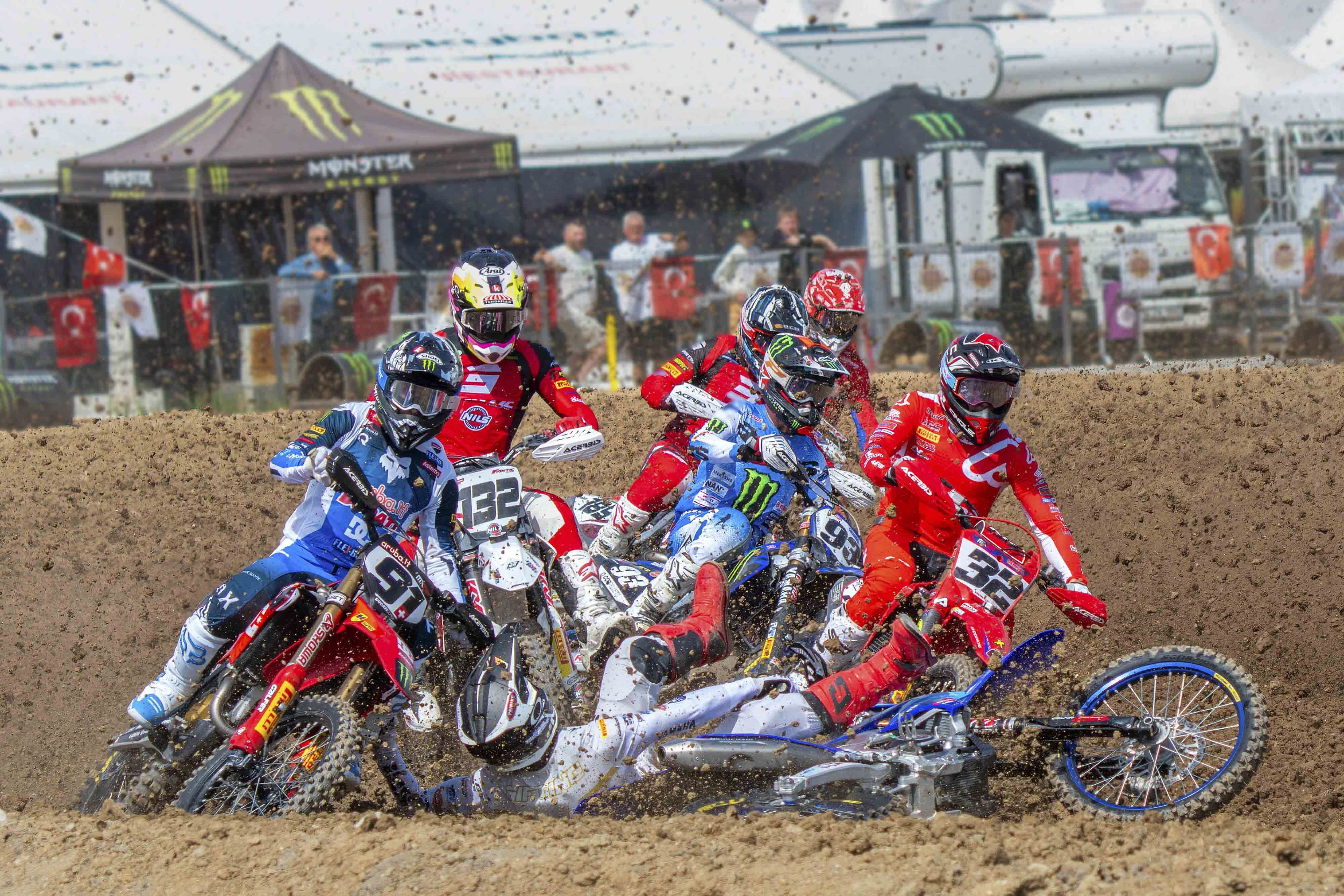 Spor Toto Yılın Spor Fotoğrafı Okan AKYÜREK / Serbest Dünya Motokros Şampiyonası kapsamında EMX250 Final 2. Yarışı, Afyonkarahisar’da yapıldı. Yarış sırasında yaşanan kazada şampiyonanın iddialı sporcularından İspanyol Escandell Elias, parkurun zorlu virajında dengesini kaybederek yere düştü.