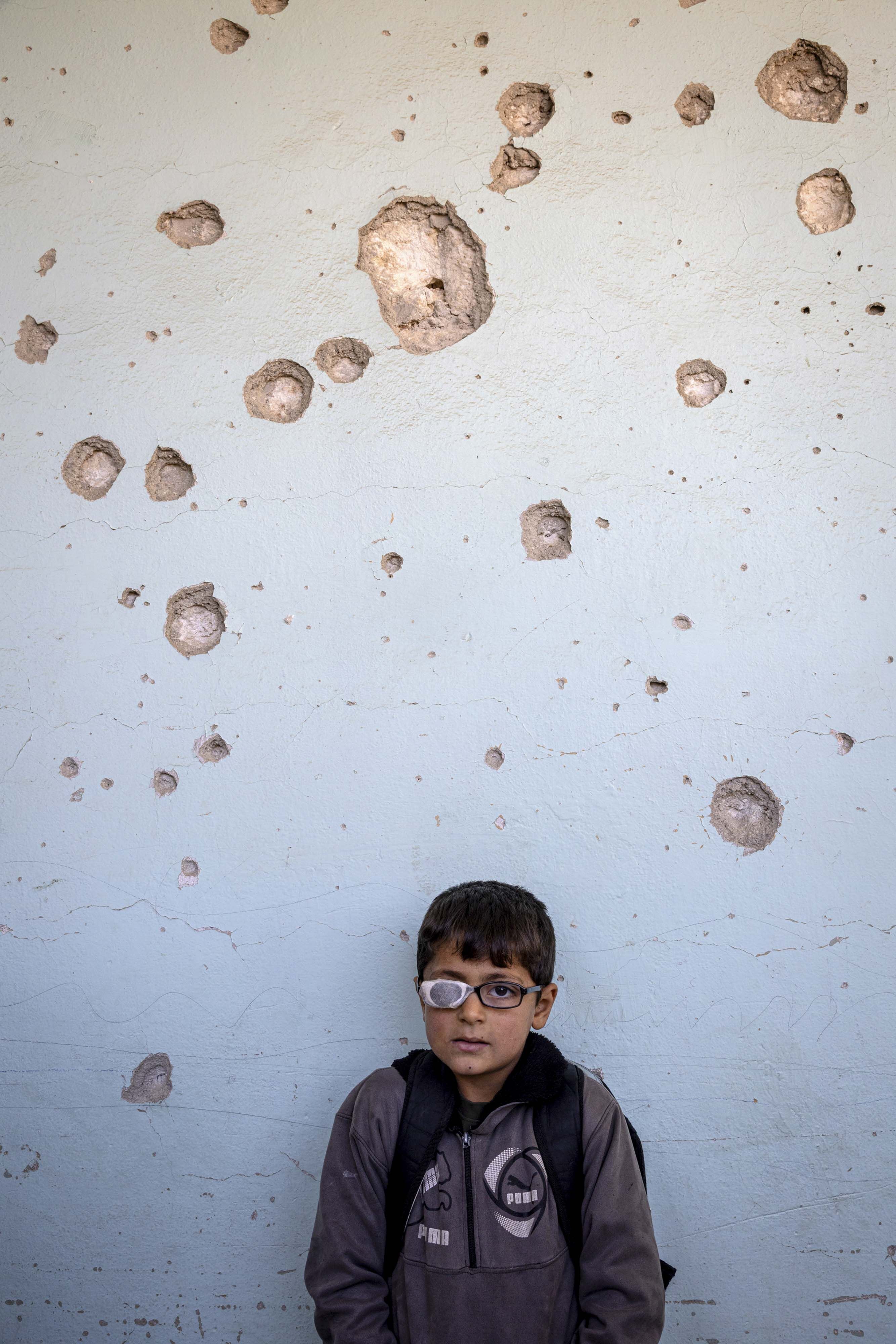 Yılın Portre Fotoğrafı Uğur YILDIRIM / Milliyet Gazetesi Suriye’deki 14 yıllık savaş boyunca yaklaşık 8 bin okul kısmen veya tamamen yıkıldı. Altı yaşındaki birinci sınıf öğrencisi Awad Hassan, çatışmaların harap ettiği İdlib şehrindeki Hikmet Okulu’nda okul zilinin çalmasını bekliyor.