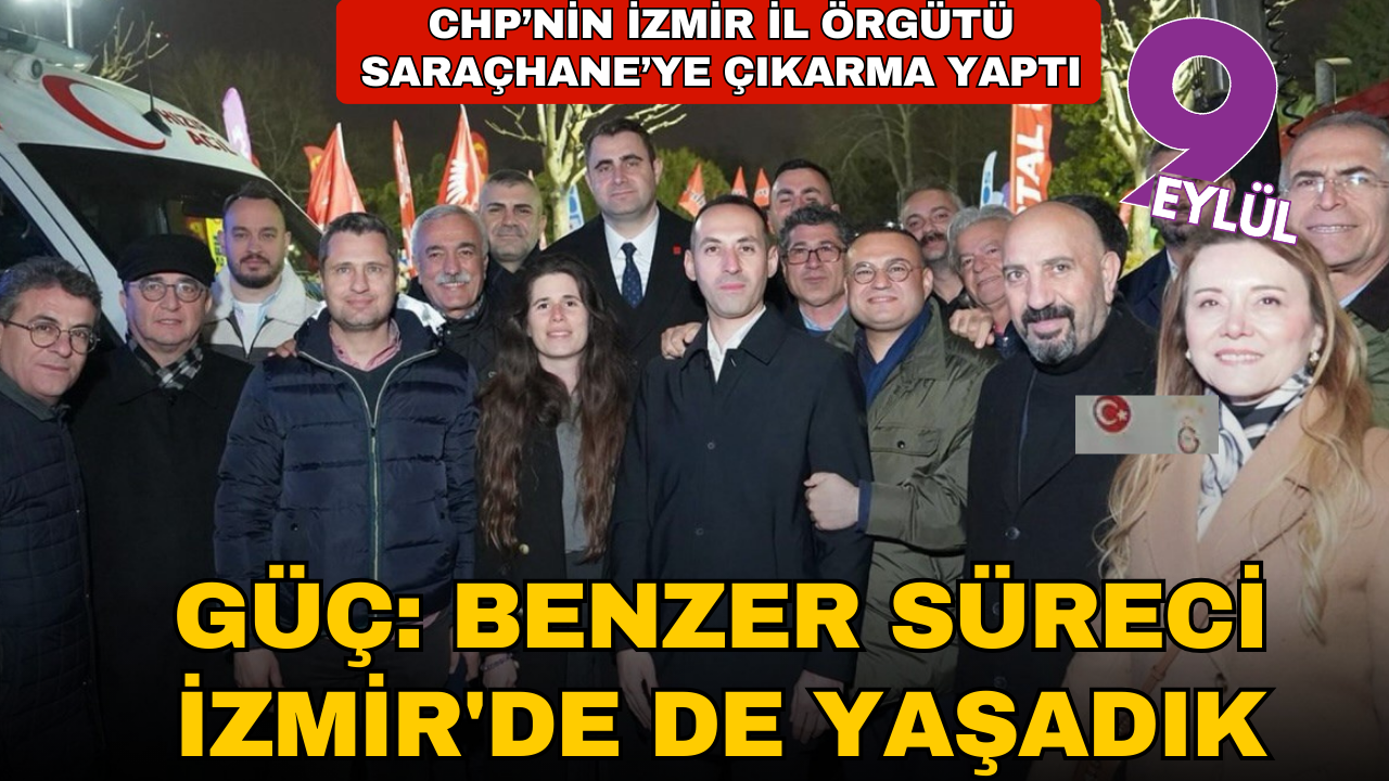 Açıklamasında İzmir'de yaşanan süreçlere de değinen Güç, "Benzer süreci İzmir'de de yaşadığımızı herkes biliyor. İzmirli halkımız biliyor" dedi. İktidara yönelik eleştirilerini sürdüren Güç, "Ülkeyi yönetecek kadrolarımızı bugün hapiste çürütmeye çalışan bu siyasal iktidarın, gelecekteki kadroları durduramayacağını herkesin bilmesi gerekiyor" diye konuștu. Güç, açıklamasını şu sözlerle tamamladı: "Bizler CHP neferleri olarak bu sürece asla boyun eğmeyeceğimizi buradan ilan ediyoruz."