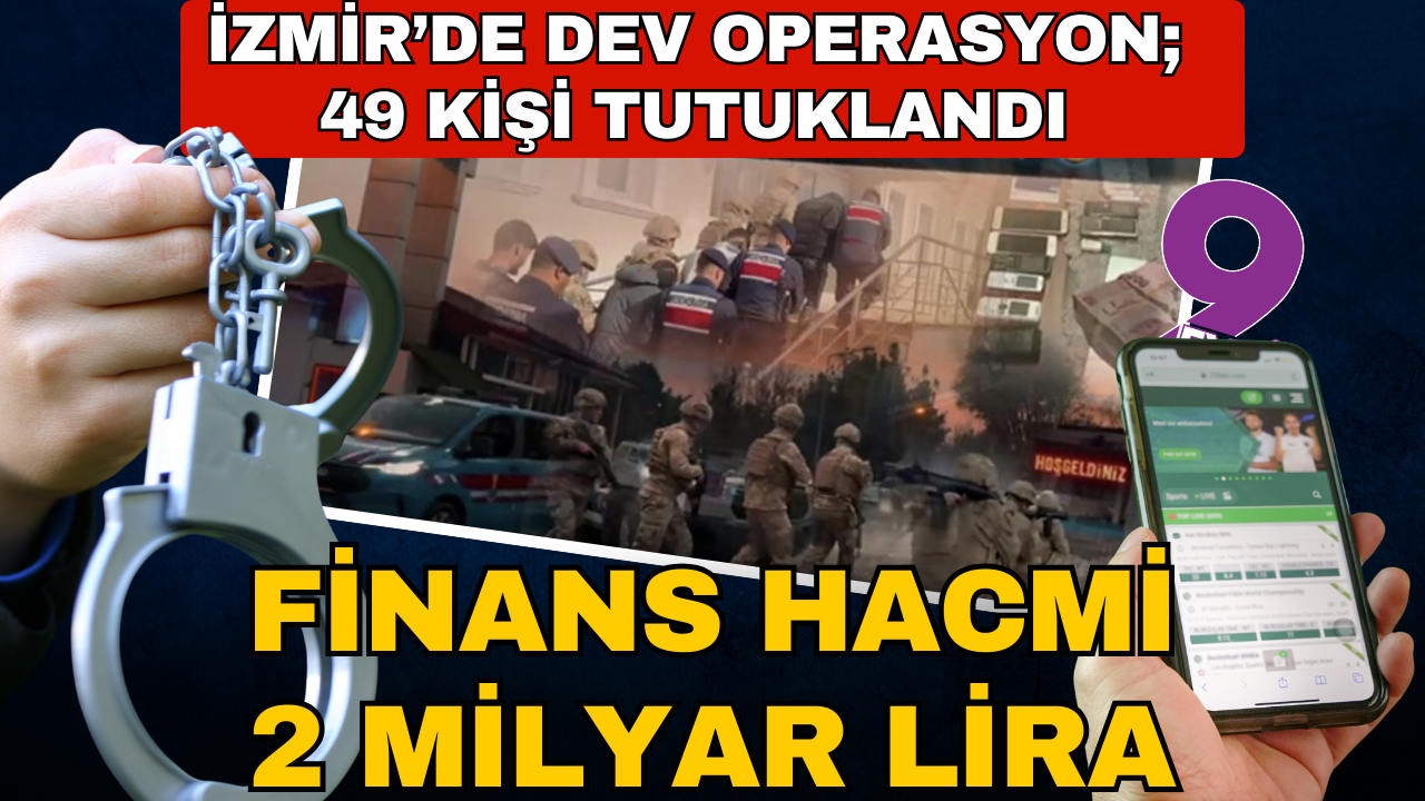 İzmir'de yasa dışı bahis operasyonunda 55 şüpheli gözaltına alındı. İşlemlerin ardından adliyeye sevk edilen şüphelilerden 49'u tutuklandı. Menemen Cumhuriyet Başsavcılığınca 'suç işlemek amacıyla örgüt kurma', 'Futbol ve Diğer Spor Müsabakalarında Bahis ve Şans Oyunları Düzenlenmesi Hakkında Kanun'a muhalefet' ve 'kara para aklama' suçlarına yönelik soruşturma yürütüldü.