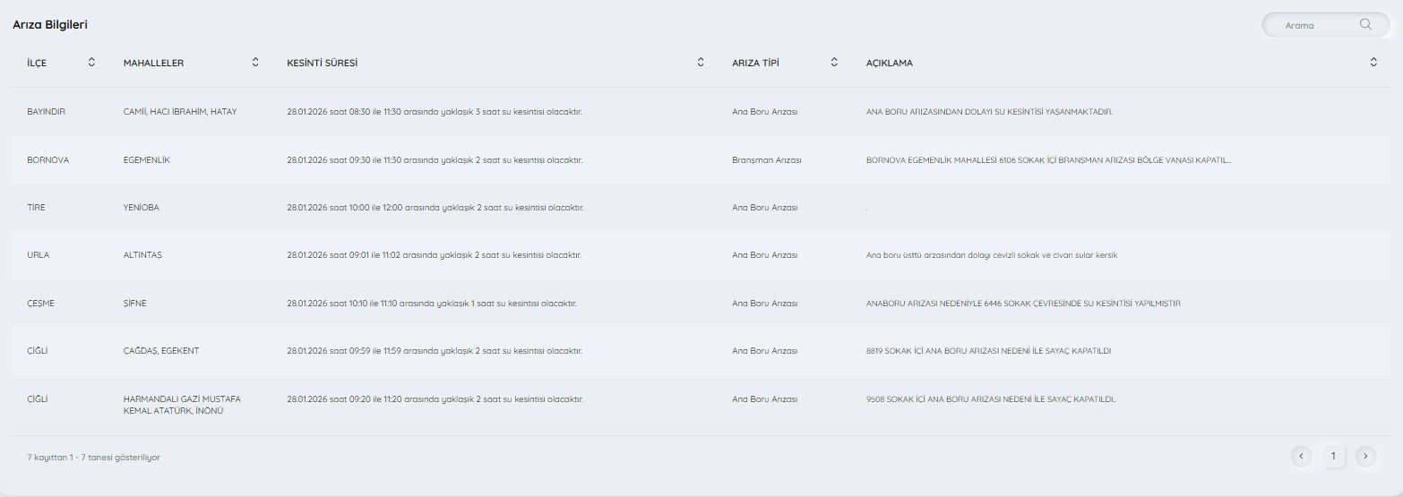 İzmir Su ve Kanalizasyon İdaresi Genel Müdürlüğü (İZSU), 28 Ocak 2026 Salı gününe ilişkin planlı ve arıza kaynaklı su kesintisi programını kamuoyuyla paylaştı. Yapılan açıklamaya göre kent genelinde ana boru ve branşman arızaları nedeniyle bazı mahallelerde belirli saat aralıklarında su kesintisi uygulanacak.