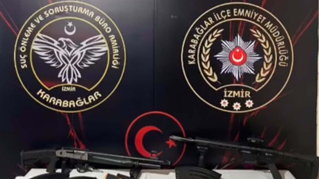 Gündüz saatlerinde tabancayla yaralanmış halde Atatürk Eğitim ve Araştırma Hastanesi'ne gelen M.A.B.'nin, şüpheli ifadeleri polisi harekete geçirdi. Karabağlar İlçe Emniyet Müdürlüğü Suç Önleme ve Soruşturma Büro Amirliği ekipleri, M.A.B.'nin hastane polisine tutarsız bilgiler verdiğini ve ardından tedaviyi reddedip hastaneden ayrıldığını belirledi. Olayın meydana geldiği ev tespit eden polis, adrese gitti. Evde yapılan aramada ruhsatsız Uzi marka makineli tabanca, 1 ruhsatsız tabanca, 2 ruhsatsız pompalı av tüfeği, 6 tüfek şarjörü, 1 tabanca şarjörü, 139 uyuşturucu hap, 30 gram esrar ve 63 bin TL ele geçirildi. Ayrıca M.A.B.'nin evin önündeki otomobilinde yapılan aramada ise 69 adet 9 mm çapında fişek, 1 Rambo bıçağı bulundu. Polis ekipleri, kazayla kendisini vurduğunu ileri süren M.A.B.'nin tedavi amaçlı başka bir hastaneye gittiğini belirledi. Tedavisinin ardından M.A.B. ile evde bulunan babası A.B. ve eniştesi Ö.G. polis ekiplerince gözaltına alındı. 3 şüphelinin polisteki işlemlerinin sürdüğü bildirildi.