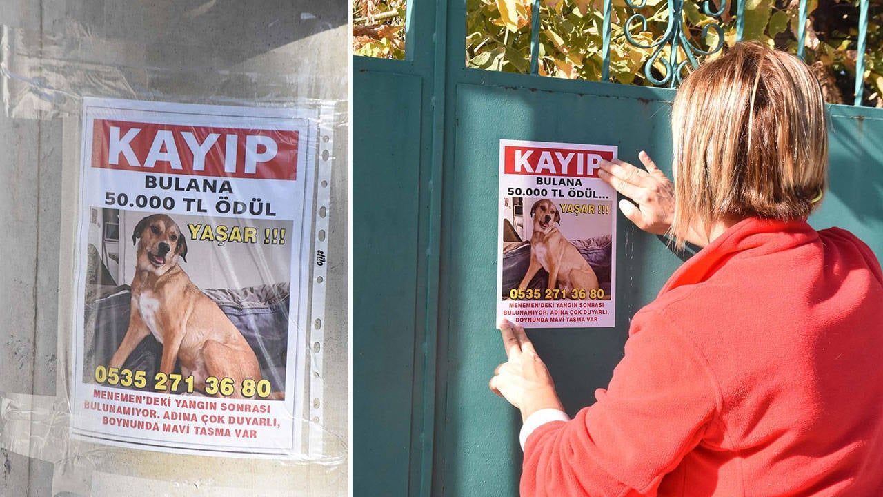 İzmir’in Menemen ilçesinde yaşayan Ayşe Küçüksille, 10 gün önce emanet bıraktığı arkadaşının evinde çıkan yangında kaybolan köpeği Yaşar’ı bulmak için sokak sokak, köy köy dolaşıyor. Küçüksille, kayıp ilanlarını duvarlara asarak ve sosyal medyada paylaşarak sesini duyurmaya çalışırken, Yaşar’ı bulana 50 bin lira ödül vereceğini açıkladı.