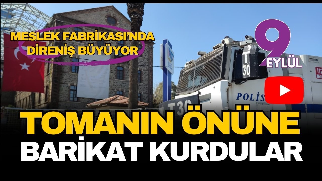 İzmir’de günlerdir süren mülkiyet krizi, bugün hafızalardan silinmeyecek görüntülere sahne oluyor. Meslek Fabrikası binasının boşaltılması için sabahın erken saatlerinde başlayan operasyona karşı İzmirliler adeta tek vücut oldu. Binanın önünde toplanan kalabalık grup, tahliye işlemlerine destek vermek amacıyla bölgeye sevk edilen emniyet araçlarının ilerlemesine izin vermedi. Gerginliğin tırmandığı anlarda vatandaşlar, polisin kullandığı bariyerlerle yolun ortasına set kurarak bir TOMA aracının önünü kesti.