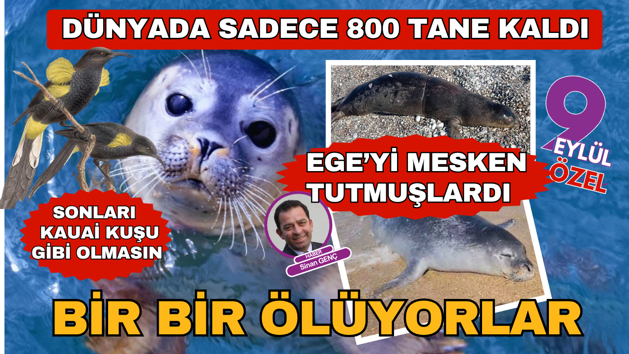 SİNAN GENÇ/ Kauai Kuşu'nun söylediği son şarkısı 1987'de duyuldu ve bu kuşun sesi sadece ses kayıtlarında kaldı. Hüzünlü şarkısıyla yürekleri burkan Kauai kuşu gibi nesli tükenme tehlikesiyle karşı karşıya kalan Akdeniz fokları da Ege sahillerinde yaşam mücadelesi veriyor. Dünyada sadece 800 tane kalan Akdeniz foklarının 100 tanesi Türkiye'de ve büyük bir çoğunluğu da Ege sahillerinde. İlk olarak 2016 yılında Kuşadası Dilek Yarımadası Milli Parkı ile Yunanistan'ın Samos Adası arasında bulunan Bayrak Adası'nda, ortaya çıkan Akdeniz fok balığı dünyanın en nadir 12 memeli türü arasında gösteriliyor.