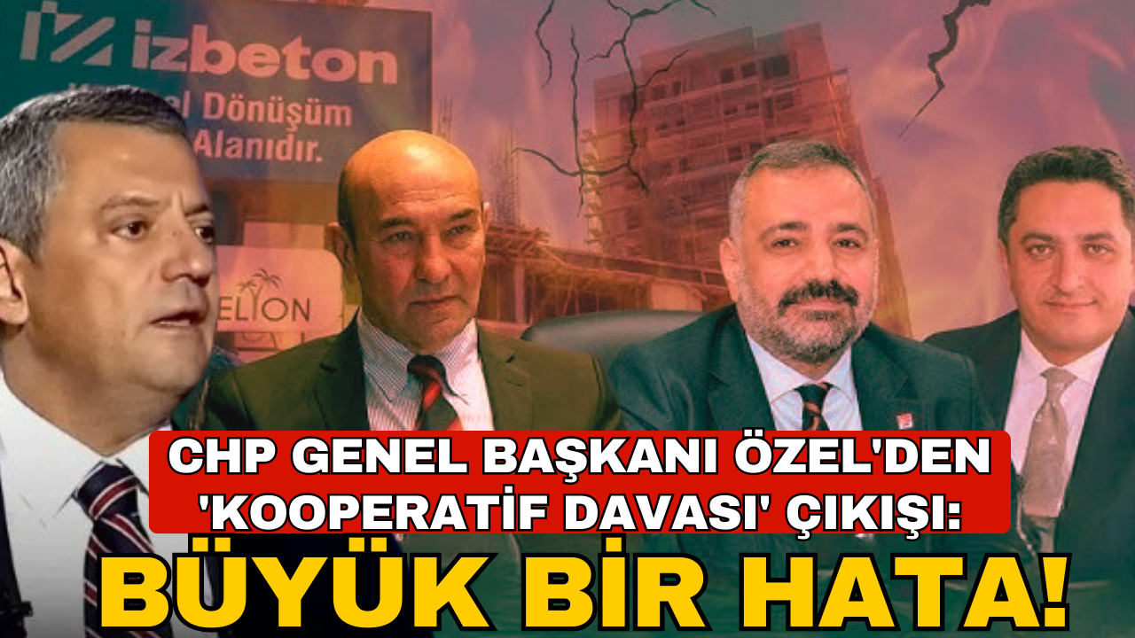 CHP Genel Başkanı Özgür Özel, katıldığı bir televizyon programında İzmir'deki Kooperatif Davası ile ilgili önemli açıklamalarda bulundu. Özel, "Tunç başkan var, Heval var ve Şenol Başkan. Bu arkadaşlarımızın tutukluluğu fahiş hatadır. Zaten yedekleme tutukluğu yaptılar. İlk dosyadan tutuksuza döndüler, ikinci bir dosyadan tutukladılar" dedi. Ekrem İmamoğlu'nun tutuklu olduğu İBB davasında tutuksuz yargılama çağrısını yineleyen Özel, geçmişte 700 yılla yargılanan İzmir Büyükşehir Belediyesi eski Başkanı Aziz Kocaoğlu'nu örnek gösterdi. Özel, Kooperatif Davası'na parantez açtı, "Tunç başkan var, Heval var ve Şenol Başkan. Bu arkadaşlarımızın tutukluluğu fahiş hatadır. Zaten yedekleme tutukluğu yaptılar. İlk dosyadan tutuksuza döndüler, ikinci bir dosyadan tutukladılar" dedi.