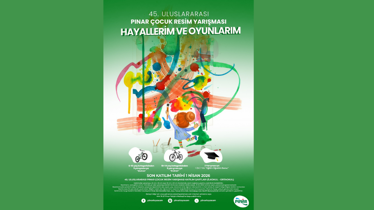 Çocukların sanatsal yönlerini güçlendirmeyi hedefleyen Uluslararası Pınar Çocuk Resim Yarışması, bu yıl 45. kez kapılarını açtı. Türkiye’nin en uzun soluklu çocuk etkinliklerinden biri olan yarışma, her yıl olduğu gibi yine küçük ressamların hayal gücünü sahneye çıkarıyor. Bu yıl belirlenen “Hayallerim ve Oyunlarım” teması, çocukların oyun dünyasını ve içsel yolculuklarını renklerle ifade etmelerine olanak tanıyor.