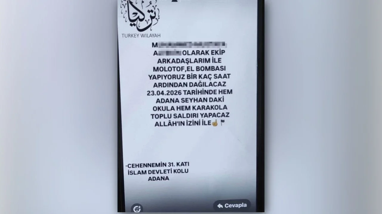 Adana'da M.M.A. isimli şahıs sosyal medya hesaplarında, "Hem okula hem de karakola saldırı yapacağız" şeklinde paylaşımlarda bulundu. Paylaşımların ardından Adana Emniyet Müdürlüğü Terörle Mücadele Şube Müdürlüğü ekipleri harekete geçti. Şüphelinin adresi belirlendi. TEM ekipleri adrese yaptığı operasyonla M.M.A.'yı gözaltına aldı. M.M.A. sorgulanmak üzere emniyete götürüldü.