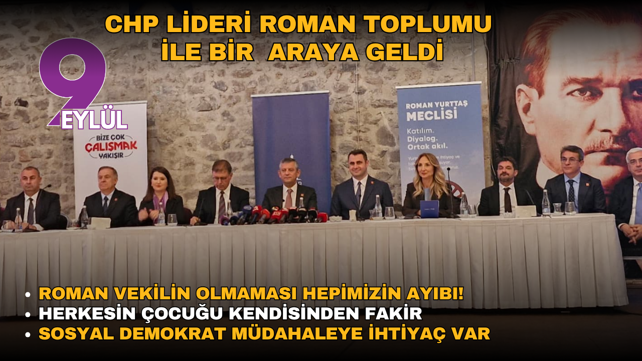 İstanbul’da Roman toplumu ile büyük bir buluşama yapacaklarını söyleyen Özel, “Gelecek hafta Romanlar günü var, İstanbul’da büyük buluşma yapacağız. Aramızda hem genel başkan olmadan önce hem de sonra kurulan sıcak ilişkilerin artarak devam etmesi lazım. CHP Türkiye’de iktidar olmaya gidiyor, sorunları kalıcı olarak sizlerle birlikte çözmesi gerekiyor. Bu dönemin en büyük ayıbı parlamentoda romanların temsil edilmemesi. Sosyal demokrat eşitlikçi parti olarak bu konuda eksiğini gidermesi gereken ilk biziz. Bu konuda katı bir iradeye sahibim” diye konuştu.