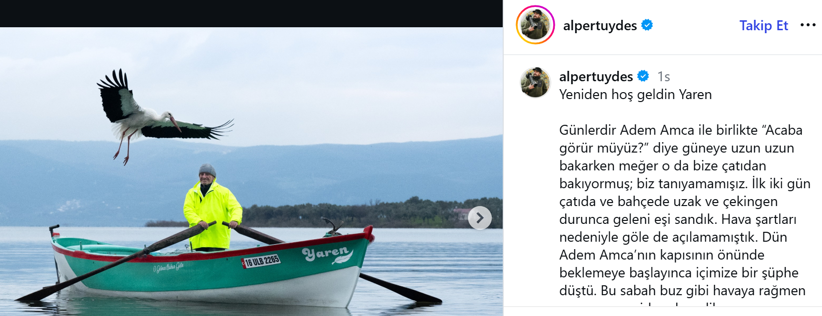 Bu özel buluşma, doğa fotoğrafçısı Alper Türdeş tarafından da görüntülendi. Adem Yılmaz’ın sandalında poz veren Yaren Leylek, yine simgesel karelere imza attı. Sosyal medyada hızla yayılan görüntüler, doğayla kurulan bağın ne kadar güçlü ve sürdürülebilir olabileceğini bir kez daha hatırlattı.