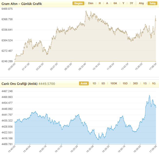 Altın piyasasında gün boyunca dalgalı bir grafik dikkat çekti. Standart altının kilogram fiyatı en düşük 6 milyon 251 bin lira, en yüksek ise 6 milyon 595 bin lira seviyesini gördü.