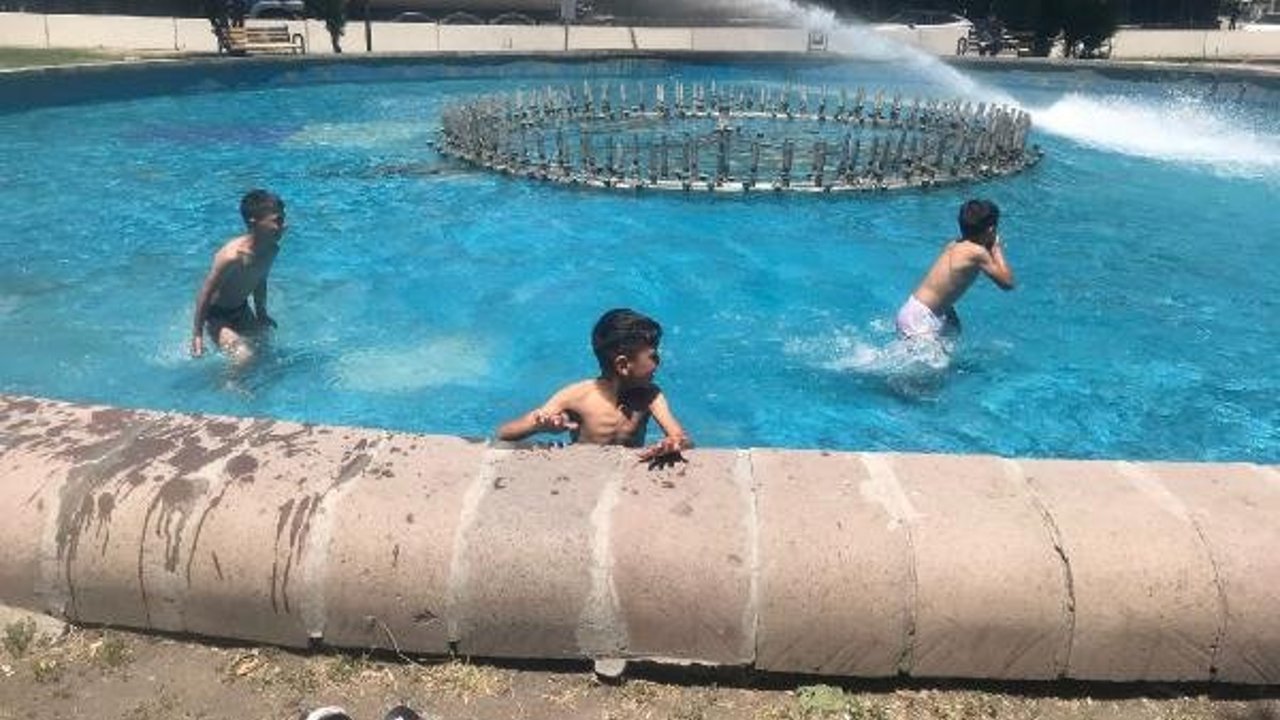 Başkent'te hava sıcaklığı, 33 dereceye yükseldi. Vatandaşlar serinlemek için parklara gitti.  Altındağ ilçesi Bentderesi Caddesi'nde bulunan süs havuzunda yüzen çocuklar görüldü. Burada yüzen Ali (8) ve Muhammet Deligöz (8) kuzenler, iç çamaşırları ile yüzerken kameraya yansıdı. Ali Deligöz, "Hava çok sıcak, serinlemek için süs havuzuna giriyorum. Ailem suya girmeme kızıyor ama ben habersiz giriyorum" dedi. Muhammet Deligöz de su derinliğinin fazla olmadığını belirterek, "Bu havuza girilmezse olmaz çünkü buz gibi. Ben her sene giriyorum hiçbir sıkıntı yaşamadım" diye konuştu. Bir süre yüzen çocuklar, kıyafetlerini giyip havuzun kenarında dondurma yedi. (DHA)