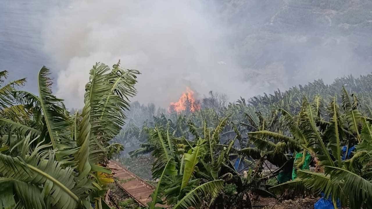 Yangının muz seralarına ve diğer tarım alanlarına sıçramasını engellemek için ekipler hem karadan hem de çevre hatlardan müdahaleye devam ediyor.