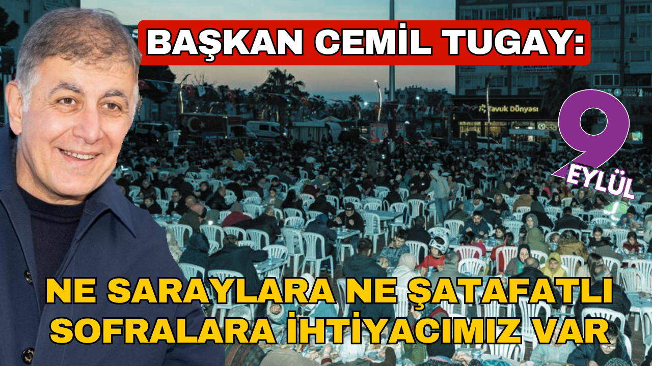 İzmir Büyükşehir Belediye Başkanı Dr. Cemil Tugay, yurttaşların sıcak ilgisi ve manevi desteği için teşekkür ederek, “Bu mütevazi sofranın etrafında birleşen bu güzel insanlar bizim gözümüzde her şeyden değerli, asil insanlardır. Bunun için bizim ne saraylara ne lüks otellere ne de şatafatlı sofralara ihtiyacımız var. Bizim ihtiyacımız olan şey işte bu birlik, beraberlik. Bu inanmışlık ve o yurttaş bilinciyle herkesin el ele, kol kola, omuz omuza durmasıdır. Tarlalarda çalışan çiftçilerimiz, fabrikalarda çalışan işçilerimiz, sanayide ter döken emekçilerimiz, devlet hizmetinde olan memurlarımız, hizmetini tamamlamış bugün emekliliğini yaşamaya çalışan insanlarımız var. Her birisi için bu mübarek ayın bu güzel sofranın ve birlik beraberliğin yüzü suyu hürmetine Allah'tan bolluk bereket ve refah diliyorum. Bu mübarek ayda iyi niyetle oruç tutan, ibadet eden, dua eden tüm yurttaşlarımızın Allah katında dileklerinin, dualarının, ibadetlerinin kabul olmasını diliyorum” diye konuştu.