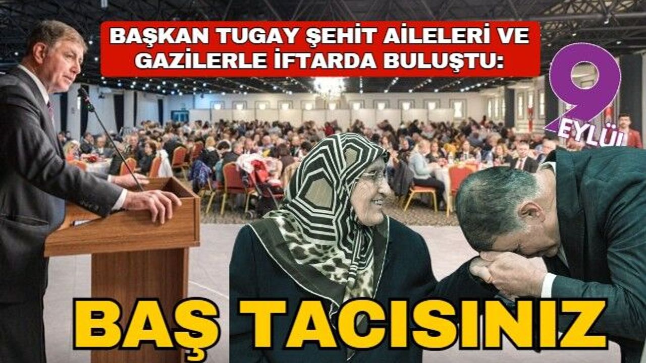 İftar programında konuşan Başkan Tugay, “Bizler bu topraklarda özgürce yaşıyorsak, çocuklarımız güven içinde büyüyorsa, bayrağımız gururla dalgalanıyorsa; bunu vatan uğruna canını ortaya koyan kahraman şehitlerimize ve gazilerimize borçluyuz. Onların emanetleri olan sizler, bu milletin baş tacısınız. Şehitlerimiz sadece kendi ailelerinin değil, 86 milyonun evladıdır. Sizler de bu milletin en kıymetli emanetlerisiniz. Bizler de yerel yönetim olarak, sizlerin her zaman yanında olmayı bir görev değil, bir vefa borcu olarak görüyoruz. O nedenle şehit ailelerimize ve gazilerimize hizmet etmek bizim için büyük bir onurdur” şeklinde konuştu.