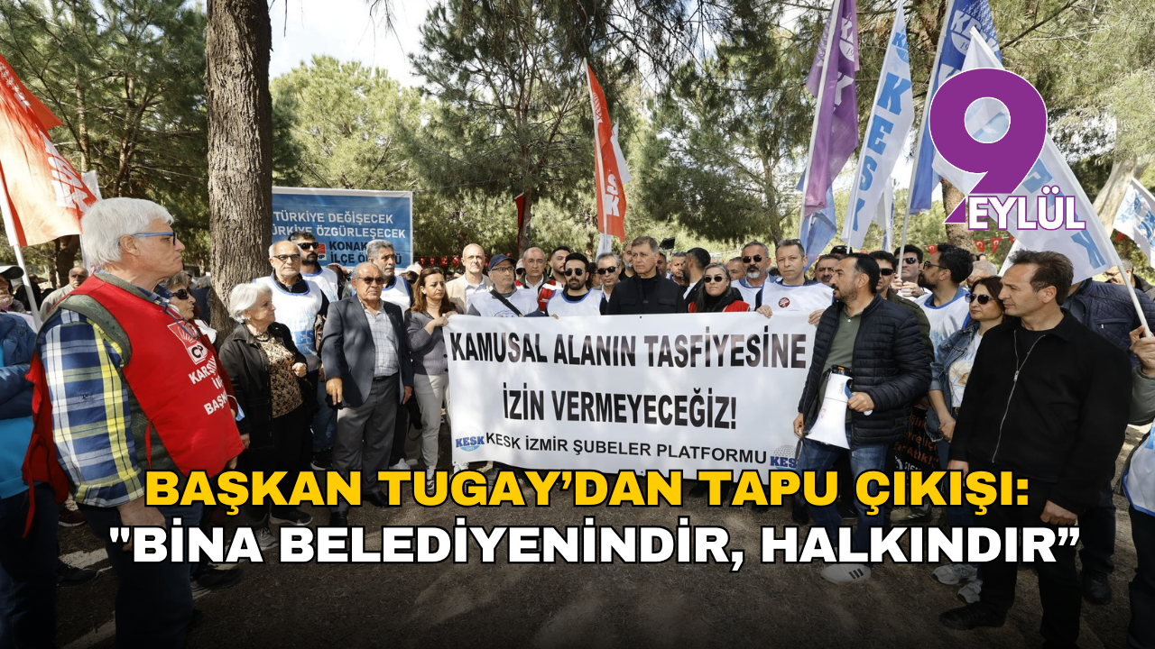İzmir Büyükşehir Belediye Başkanı Dr. Cemil Tugay, Meslek Fabrikası önünde sürdürülen nöbetin 7’nci gününde yaptığı açıklamada binanın mülkiyetine ilişkin tartışmalara yanıt verdi.