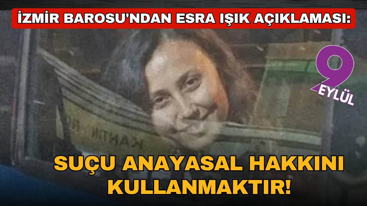 İzmir Barosu, Akbelen Ormanı’ndaki çevre mücadelesi sırasında gözaltına alınan Esra Işık'ın tutuklanmasına ilişkin, "Esra Işık’ın ‘suçu’ doğayı savunmaktır. Esra Işık’ın ‘suçu’ anayasal hakkını kullanmaktır." açıklamasını yaptı. Muğla’nın Milas ilçesinde Akbelen Ormanı çevresindeki tarım arazilerinin acele kamulaştırılmasına karşı açılan dava kapsamında dün yapılan bilirkişi keşfine yönelik protesto sırasında gözaltına alınan Esra Işık tutuklandı.