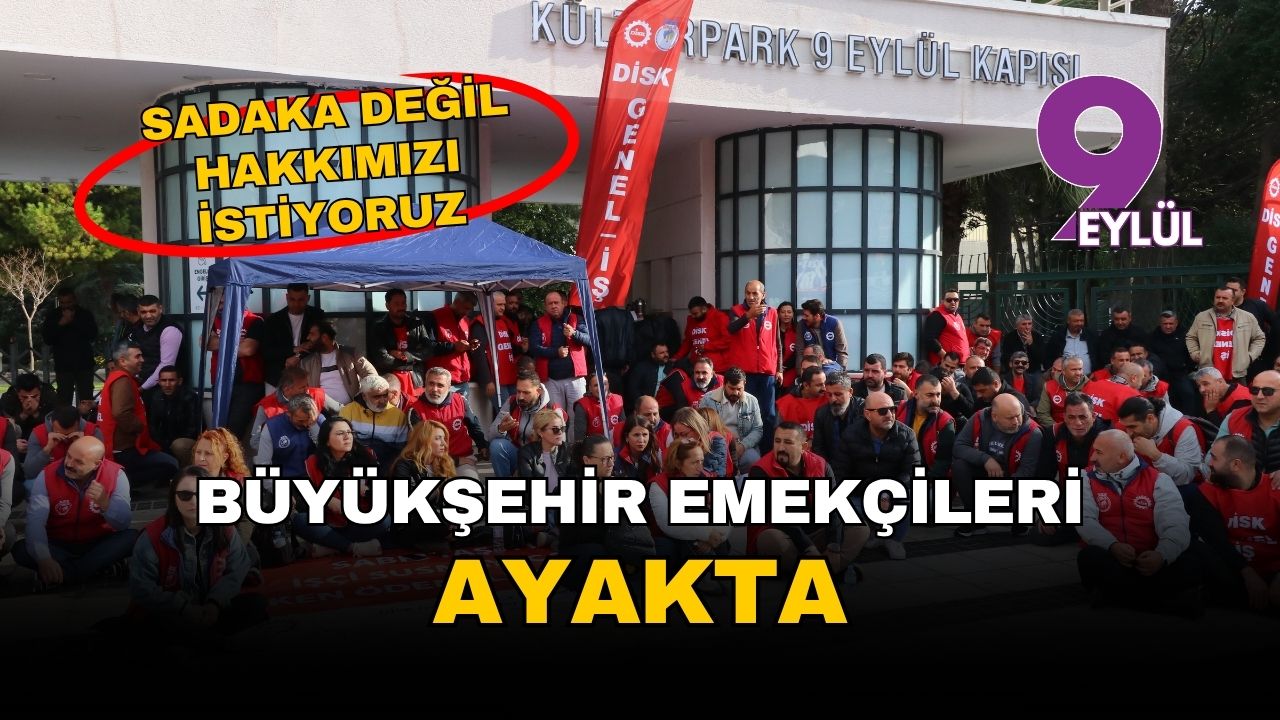 DİSK/Genel-İş Sendikası İzmir 1 ve 2 Nolu Şubeleri öncülüğünde belediye binası önünde toplanan yüzlerce işçi, seslerini yönetime duyurmak için oturma eylemi başlattı. Eylemde konuşan Genel-İş 2 No'lu Şube Başkanı Ercan Gül, "Biz sadaka değil, hak ettiğimiz ücretlerimizi istiyoruz" sözleriyle işçilerin içinde bulunduğu çaresizliği özetledi. Gül, "Her geçen gün yeni zamlarla boğuşuyoruz ve biz emekçiler yaşam mücadelesi veriyoruz" dedi.