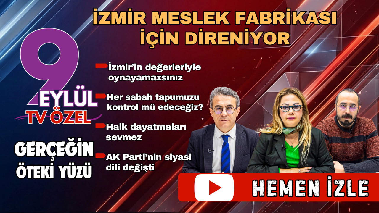 YAĞMUR KARADAĞ/İzmir Gazeteciler Cemiyeti Başkanı Dilek Gappi, Avukat Murat Aydın ve Ege’de Sonsöz Genel Yayın Yönetmeni Ender Aldanmaz, Dokuz Eylül TV’de yayınlanan ‘Gerçeğin Öteki Yüzü – Fikr-i İsyan’ programında; İzmir Büyükşehir Belediyesi ile Vakıflar Genel Müdürlüğü arasında Meslek Fabrikası’na ilişkin yaşanan hukuki gerilim ve direniş tüm yönleriyle ele alındı.