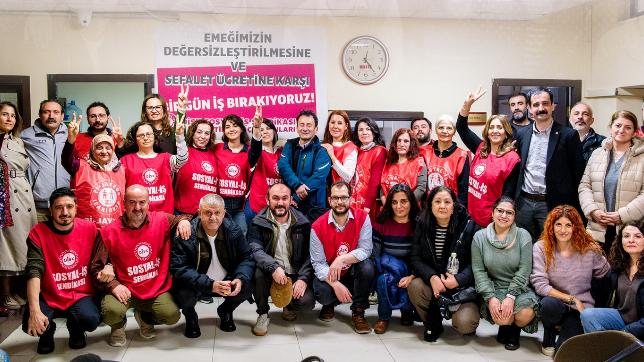 DİSK’e bağlı Sosyal-İş ile Eğitim ve Bilim Emekçileri Sendikası (Eğitim-Sen) arasında yürütülen 8. dönem toplu iş sözleşmesi sürecinin uyuşmazlıkla sonuçlanmasının ardından Eğitim-Sen emekçileri bugün iş bıraktı. İzmir, Ankara ve İstanbul'da Sosyal-İş üyesi işçiler, basın açıklaması gerçekleştirdi. İzmir'deki açıklama, Eğitim-Sen 1 Nolu Şube’de gerçekleştirildi.