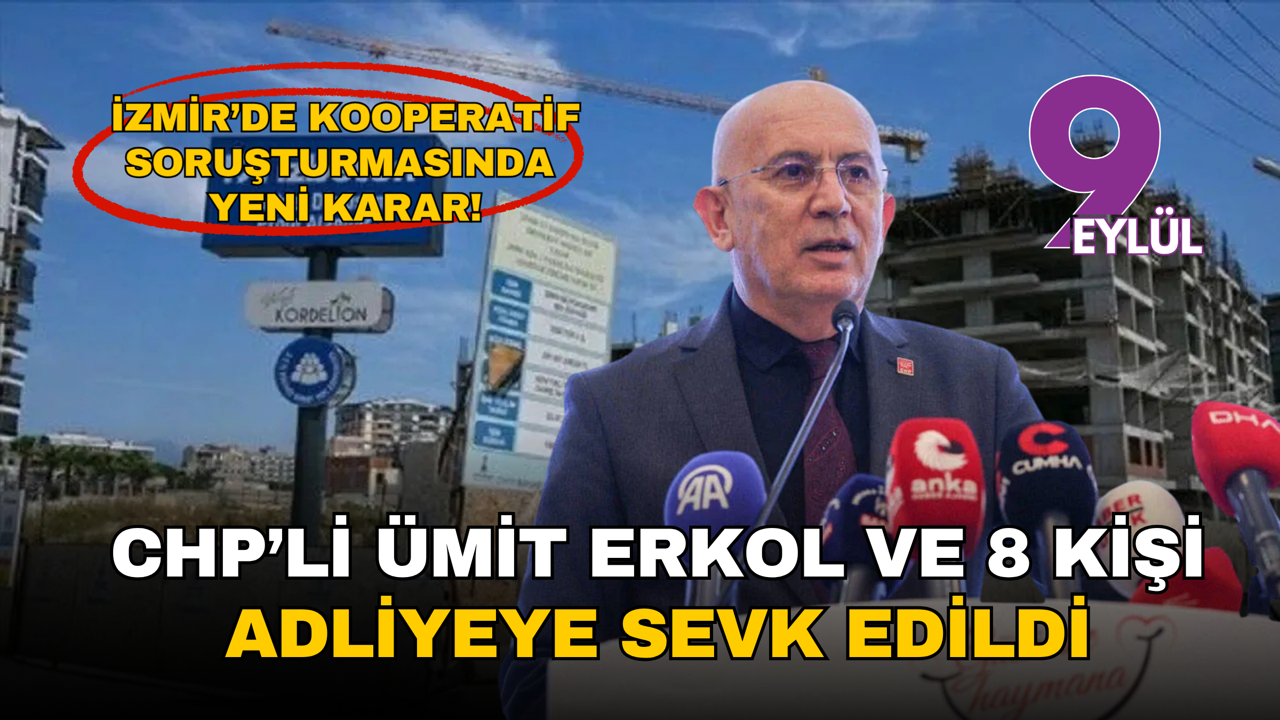 İzmir’de yürütülen kooperatif soruşturması kapsamında gözaltına alınanlar adliyeye sevk edildi. Aralarında CHP Ankara İl Başkanı Ümit Erkol’un da bulunduğu 9 kişi, İzmir İl Jandarma Komutanlığı’ndaki işlemlerinin tamamlanmasının ardından adliyeye gönderildi. Soruşturmanın, İZBETON A.Ş. üzerinden yürütüldüğü belirtilen usulsüzlük iddialarına ilişkin olduğu bildirildi.