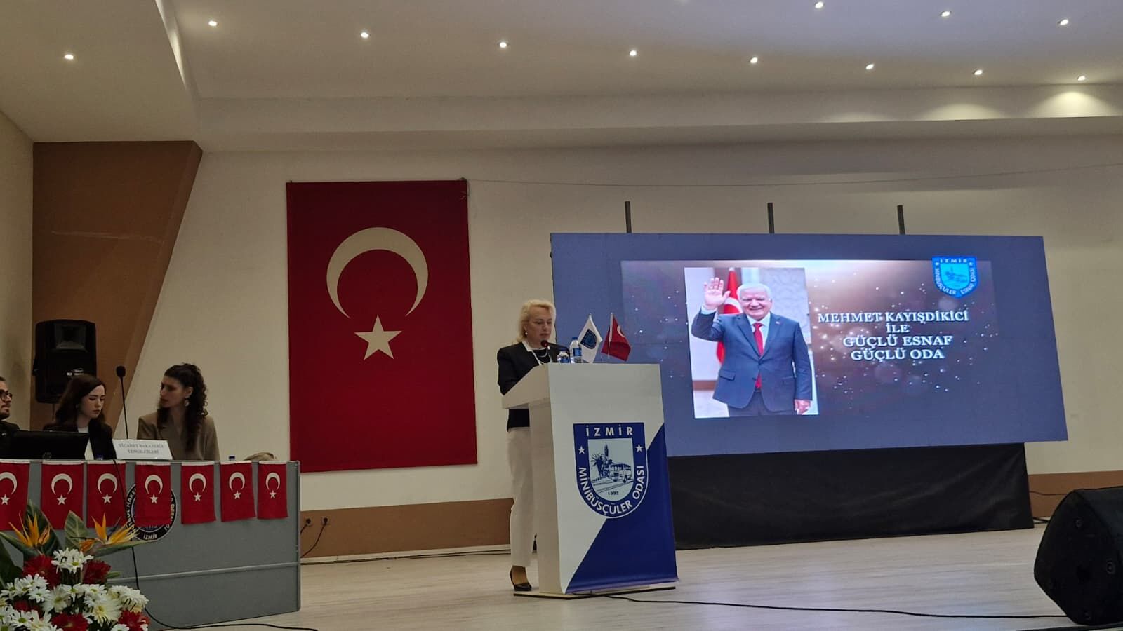 SEMİ TEKTAŞ/İzmir Minibüsçüler Esnaf Odası 11. Olağan Genel Kurul Toplantısını İzmir Atatürk Stadyumu’nda gerçekleştiriyor. Seçimde mevcut Başkan Mehmet Kayışdikici, Kader Atlı ve kadın aday Hatice Korkmaz başkanlık için yarışıyor. Genel Kurul’a İzmir Esnaf ve Sanatkârlar Birliği Odası (İESBO) Başkanı Yalçın Ata ve çok sayıda minibüsçü esnafı katıldı.