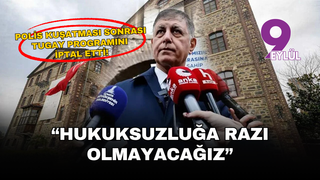 Tugay açıklamasında, “%100 mülkiyeti İzmir Büyükşehir Belediyesi’ne ve dolayısıyla İzmir halkına ait olan binamıza hukuksuz şekilde el koyuldu. Dava devam ederken sabahın beşinde yüzlerce polisle belediye hizmet binasının ablukaya alınması İzmir’in tarihine geçecek bir utançtır” ifadelerini kullandı.