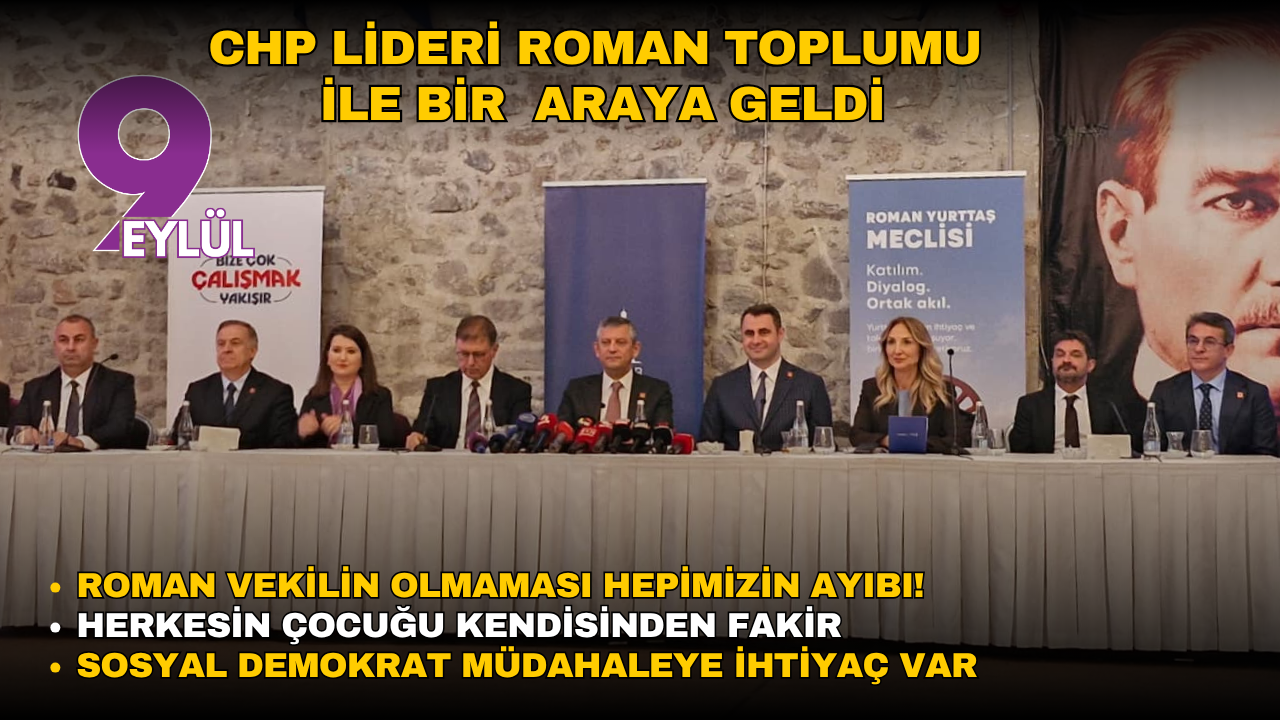 İstanbul’da Roman toplumu ile büyük bir buluşama yapacaklarını söyleyen Özel, “Gelecek hafta Romanlar günü var, İstanbul’da büyük buluşma yapacağız. Aramızda hem genel başkan olmadan önce hem de sonra kurulan sıcak ilişkilerin artarak devam etmesi lazım. CHP Türkiye’de iktidar olmaya gidiyor, sorunları kalıcı olarak sizlerle birlikte çözmesi gerekiyor. Bu dönemin en büyük ayıbı parlamentoda romanların temsil edilmemesi. Sosyal demokrat eşitlikçi parti olarak bu konuda eksiğini gidermesi gereken ilk biziz. Bu konuda katı bir iradeye sahibim” diye konuştu.