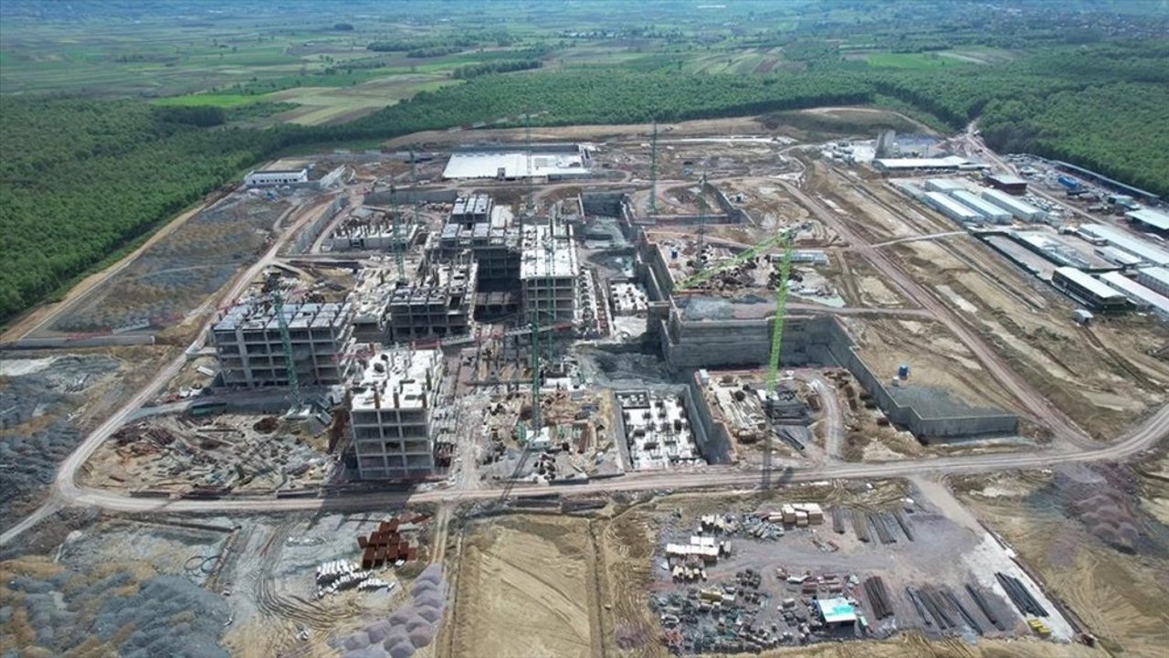 Alandüzü Mahallesi'nde 16 ay önce yapımına başlanan ve yüzde 40 ilerleme kaydedilen hastane, tek kampüste ihtiyaçların karşılandığı ileri teknolojiyle donatılmış sağlık üssü olacak.