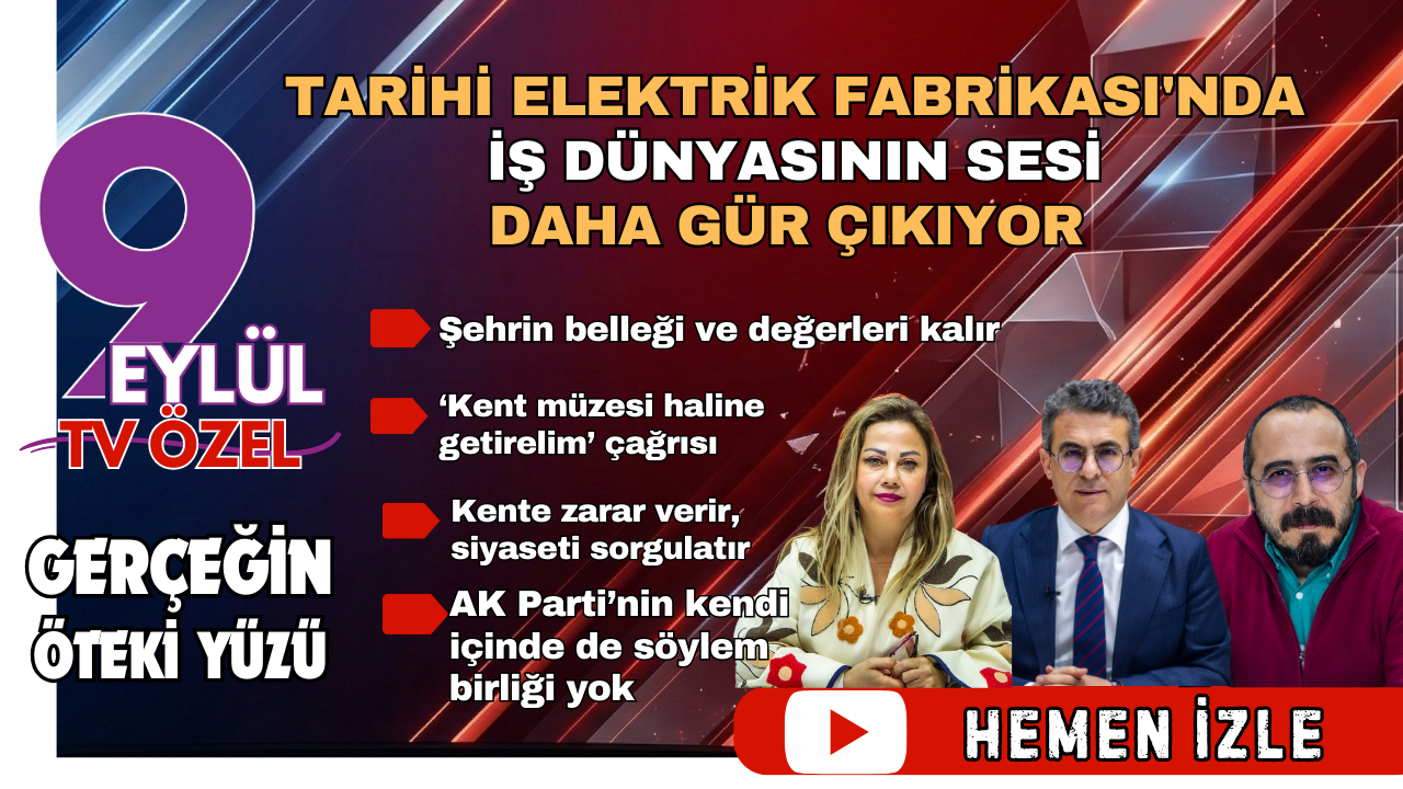 YAĞMUR KARADAĞ/Dokuz Eylül TV’de yayınlanan ‘Gerçeğin Öteki Yüzü – Fikr-i İsyan’ programında İzmir Gazeteciler Cemiyeti Başkanı Dilek Gappi, Avukat Murat Aydın ve Gazeteci Ender Aldanmaz iş dünyasının ve siyasilerin Tarihi Elektrik Fabrikası hakkında yaptığı yorumları değerlendirdi.