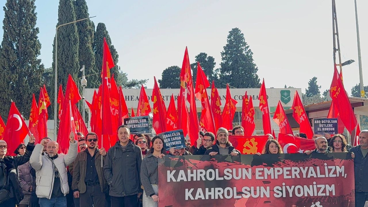 Türkiye Komünist Partisi (TKP) İzmir İl Örgütü, ABD ve İsrail’in İran’a yönelik saldırılarına tepki göstermek amacıyla Buca’daki NATO üssü önüne yürüdü. Eyleme parti üyeleri ve destekçiler katıldı.
