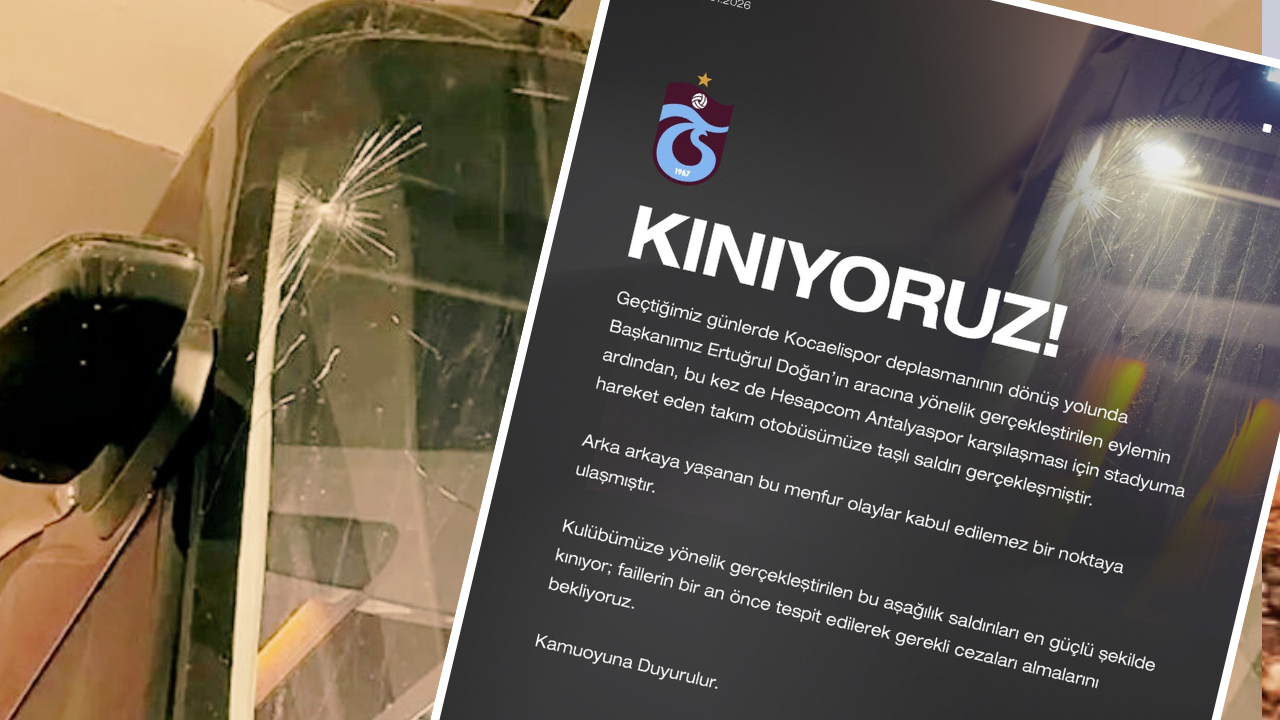 Trabzonspor, Trendyol Süper Lig'in 20. haftasında bu akşam oynayacakları Antalyaspor maçı öncesi takım otobüsüne yapılan taşlı saldırıyı kınadıklarını açıkladı. Bordo-Mavili kulüpten konuyla ilgili yapılan açıklamada şu ifadelere yer verildi:
