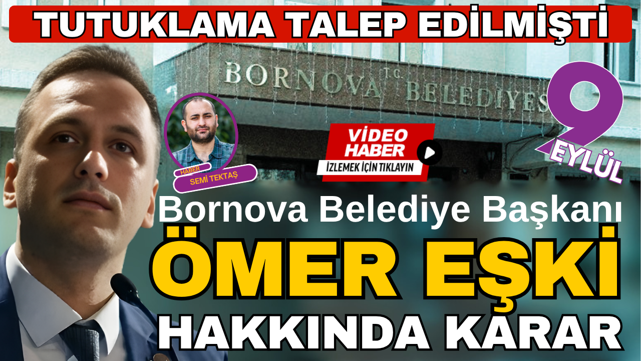 SEMİ TEKTAŞ/ İzmir Cumhuriyet Başsavcılığı tarafından yürütülen soruşturma kapsamında Bornova Belediye Başkanı Ömer Eşki'nin de aralarında olduğu 4 kişi gözaltına alınmıştı. Emniyetteki işlemlerinin ardından adliyeye sevk edilen Eşki ile beraberindeki 3 kişi, savcılık ifadelerinin ardından tutuklanmaları talebiyle nöbetçi Sulh Ceza Hakimliği'ne sevk edilmişti. Tutuklama talebiyle nöbetçi Sulh Ceza Hakimliği'ne sevk edilen Bornova Belediye Başkanı Ömer Eşki ve beraberindeki 3 kişi, hakimlik sorgularının ardından serbest bırakıldı.
